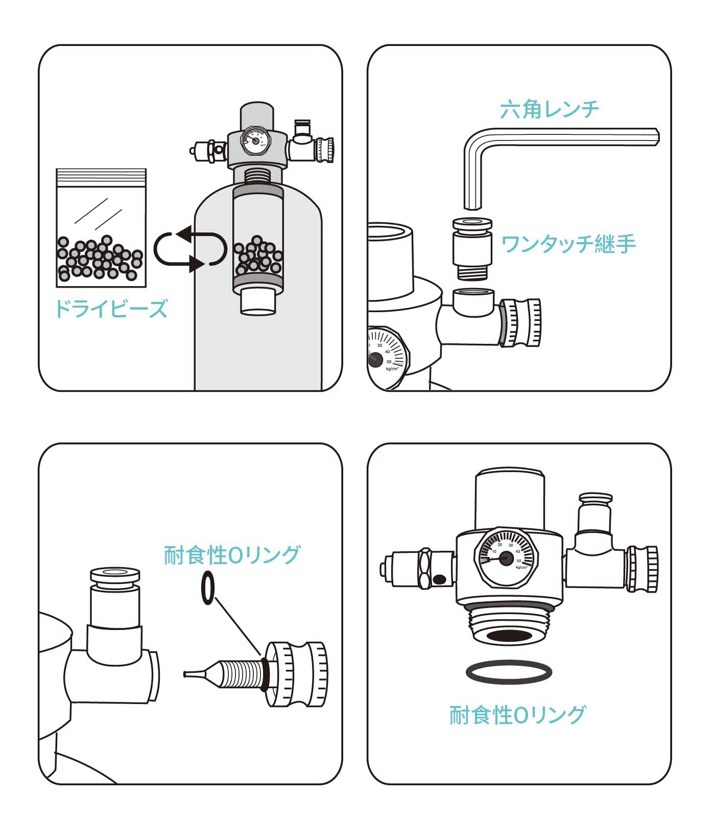 長期間のご利用いただけるように、CO2レギュレーター交換パーツを交換いただけます。