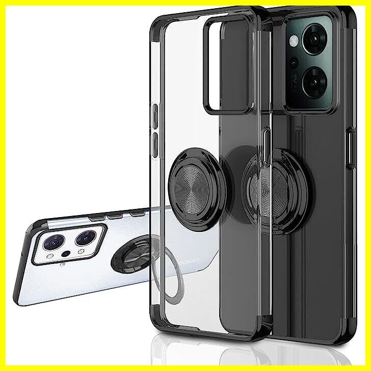 [Kawasina] OPPO Reno9 A ケース リング OPPO Reno7 A ケース リング付き 透明 軽量 薄型 OPG04 A201OP CPH2353 オッポ リノ7 A ケース A301OP CPH2523 オッポ リノ9 A ケース ソフトメッキ加工 取り出し易い 背面クリア ブラック