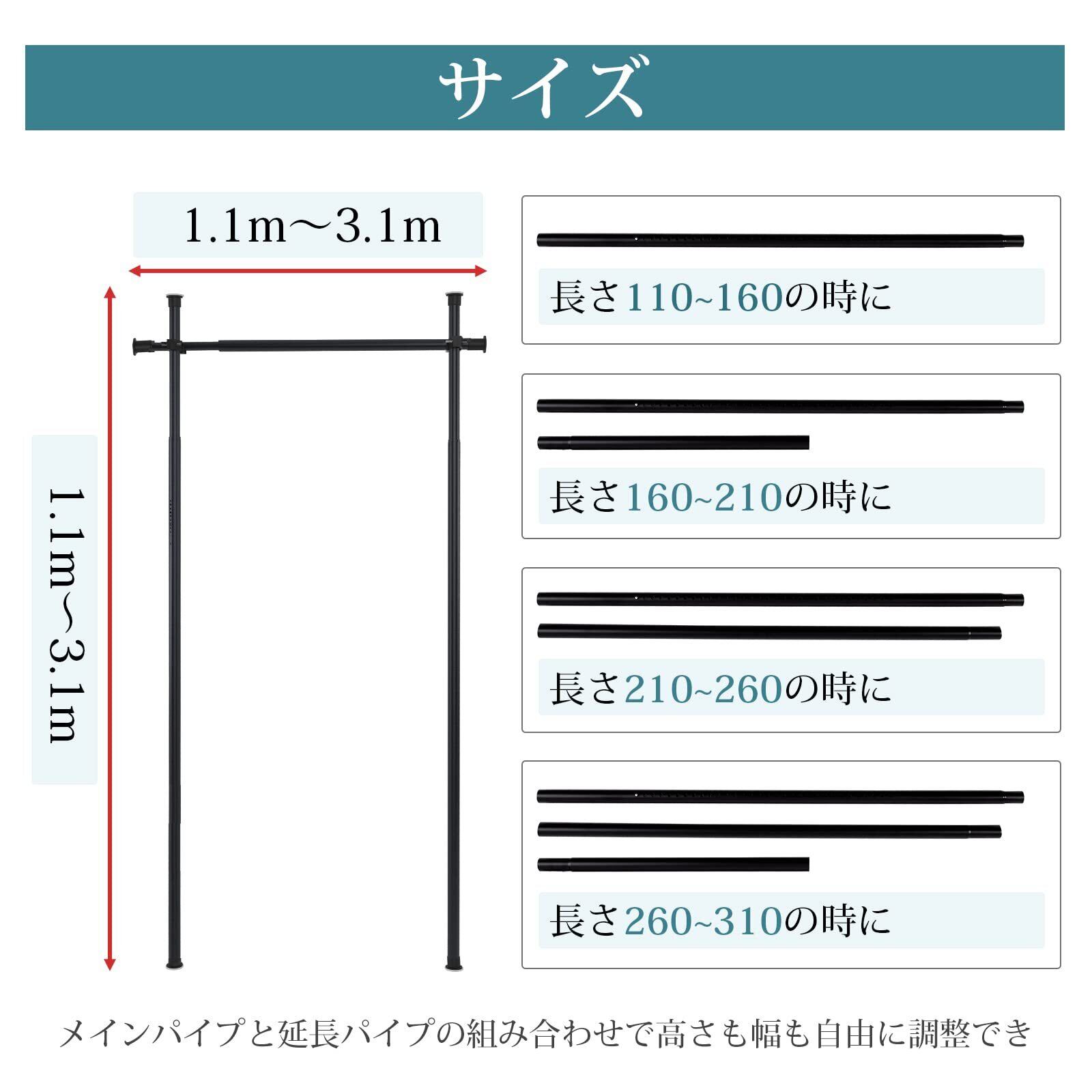 【超広い調整範囲】横棒も縦棒と同じ伸縮調整構造を革新的に採用し、幅と高さの調整範囲が大幅に広がり、市場では珍しい1.1M-3.1Mに達します。 広い調整範囲により、あらゆるシーンに適しています。