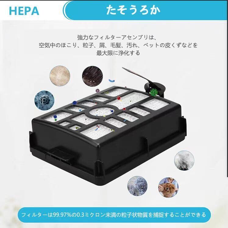 【高品質】互換フィルターです。高品質な真空HEPAフィルターを採用しており、 0.3ミクロンもの微細な粒子を99.99%捕らえられますから、部屋の空気も清浄になり、二次大気汚染を防ぐことができます。 塵、埃、および他のアレルゲンをしっかりキャッチ!