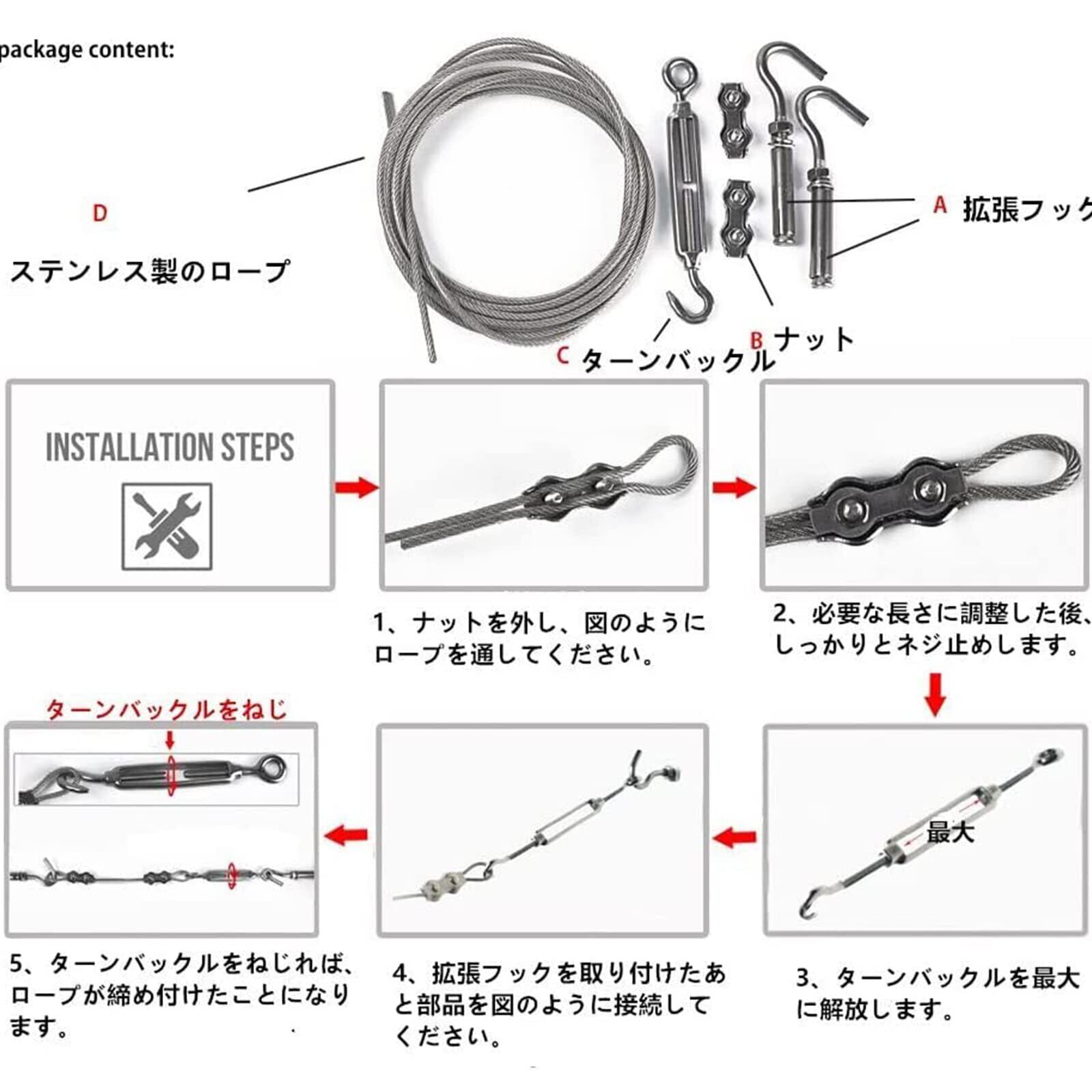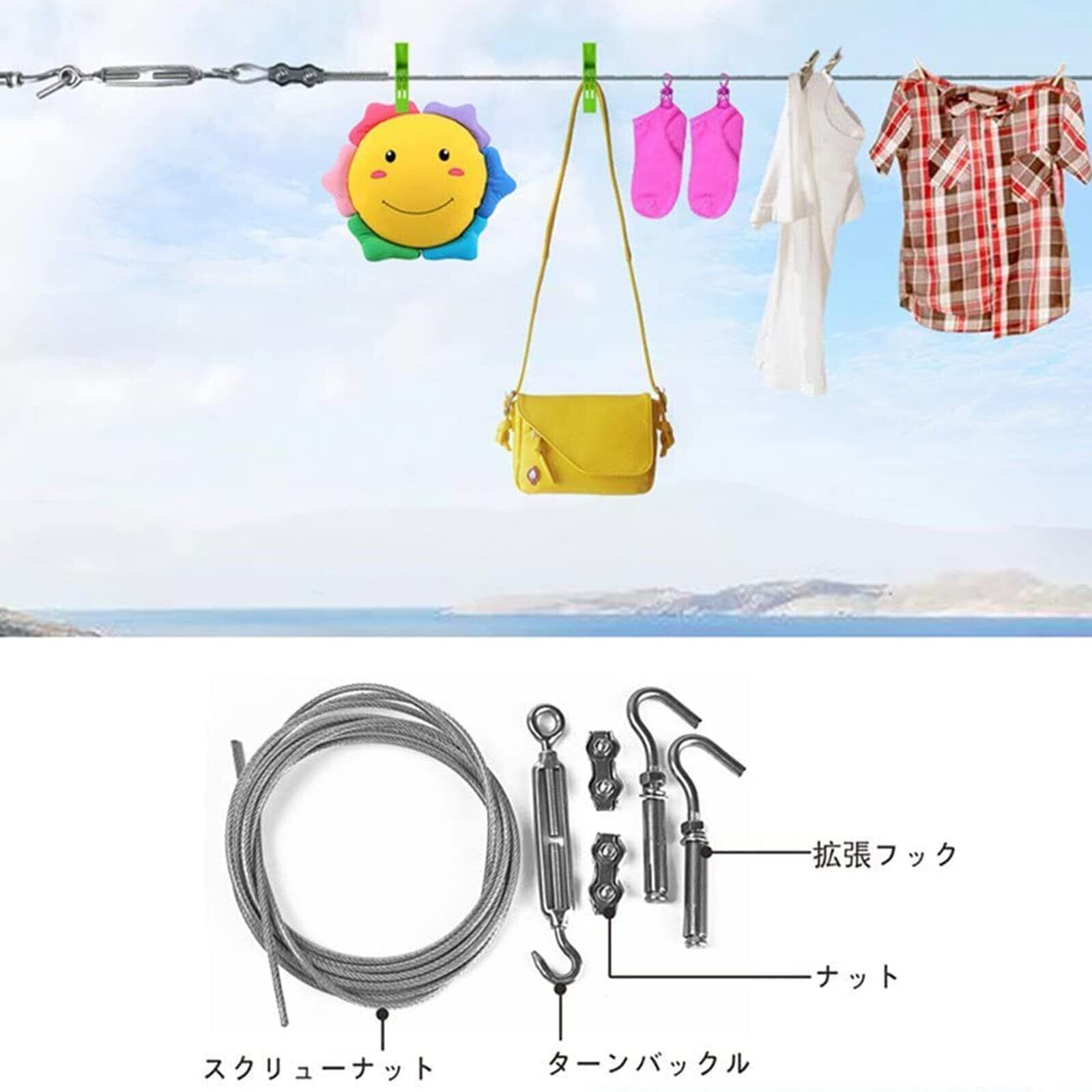 DEWEL 物干しロープ 洗濯ロープ 多機能ロープ ステンレス鋼ケーブル ワイヤー カーテンワイヤー 丈夫 防風 耐錆 耐腐食性 耐熱性 耐摩擦性 携带便利 屋外/屋内/家/旅行/乾燥 長さ調節可能 530cm