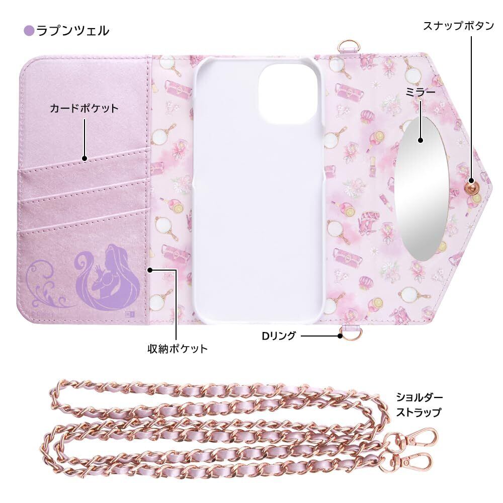 iPhone 15 ケース ディズニー 手帳型 レザーケース Collet ショルダーストラップ付き ラプンツェル