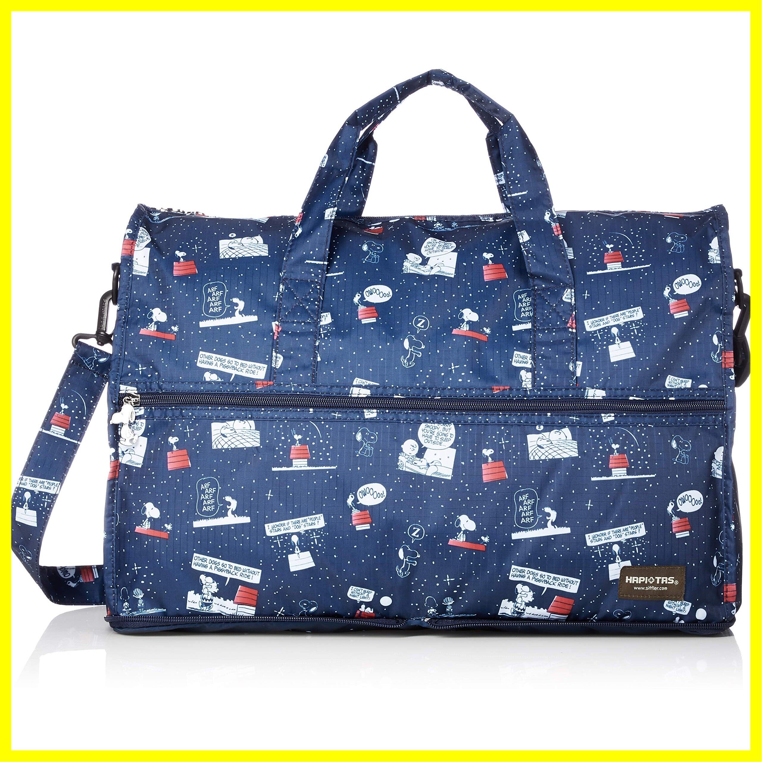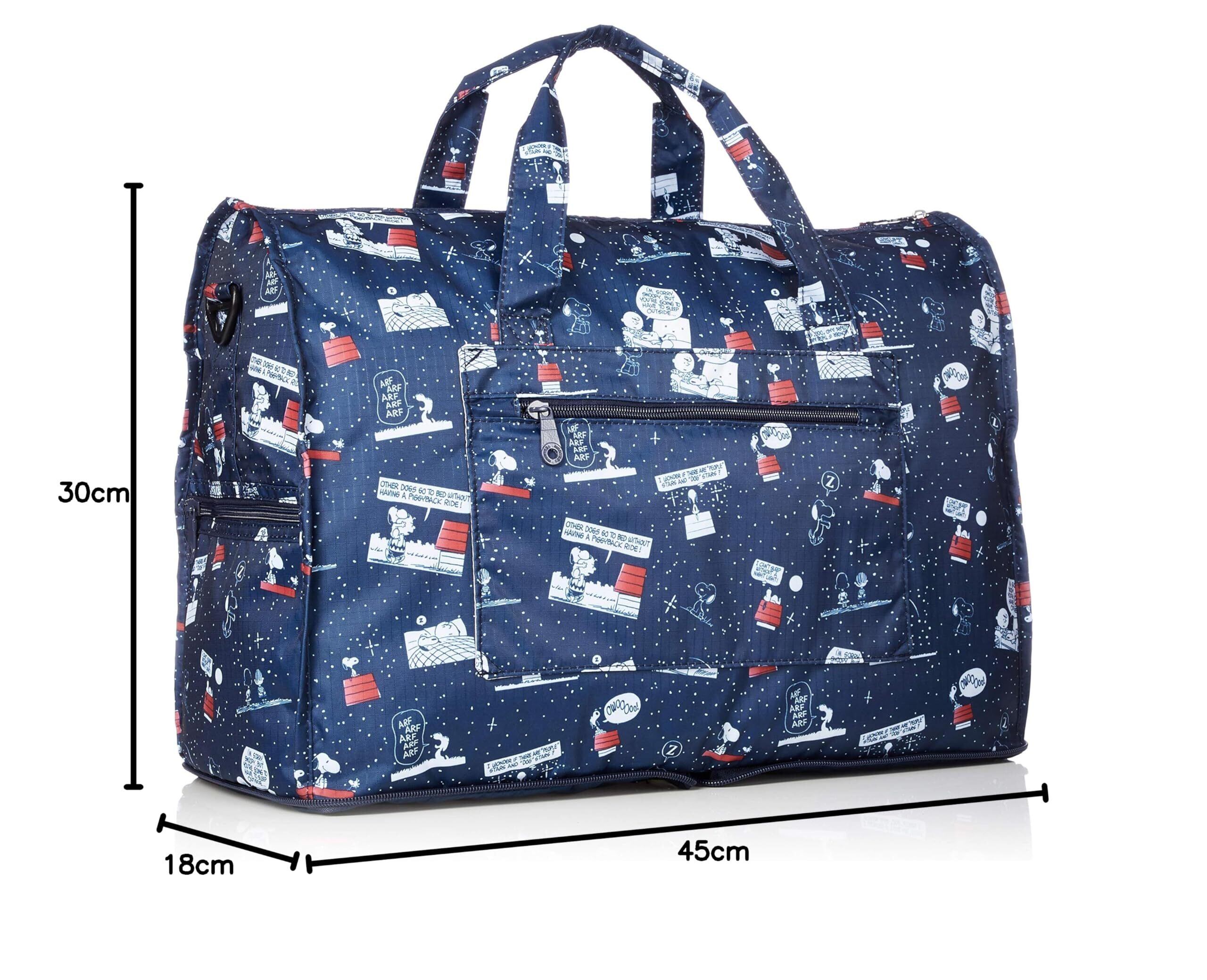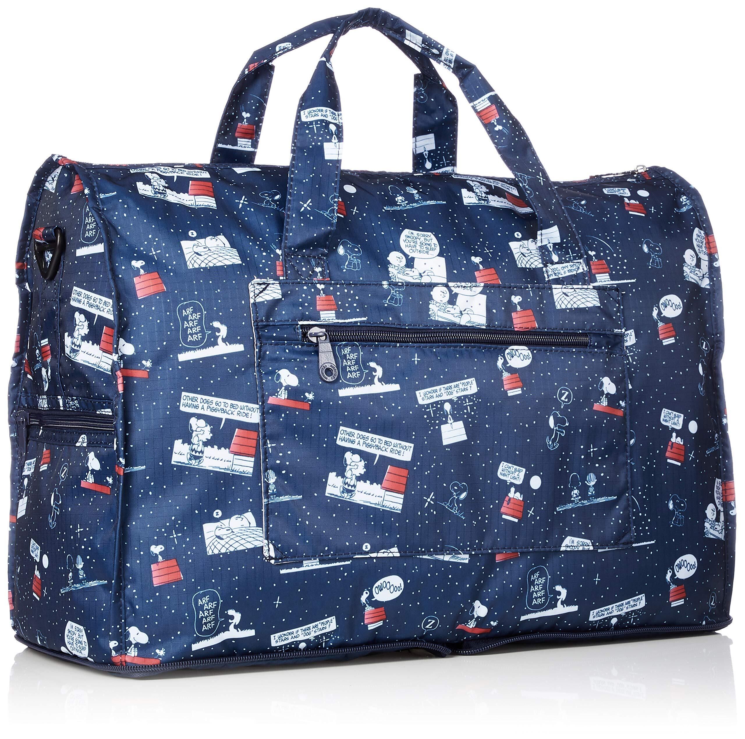スヌーピーのコンパクトにたためる折りたたみボストンバッグ。