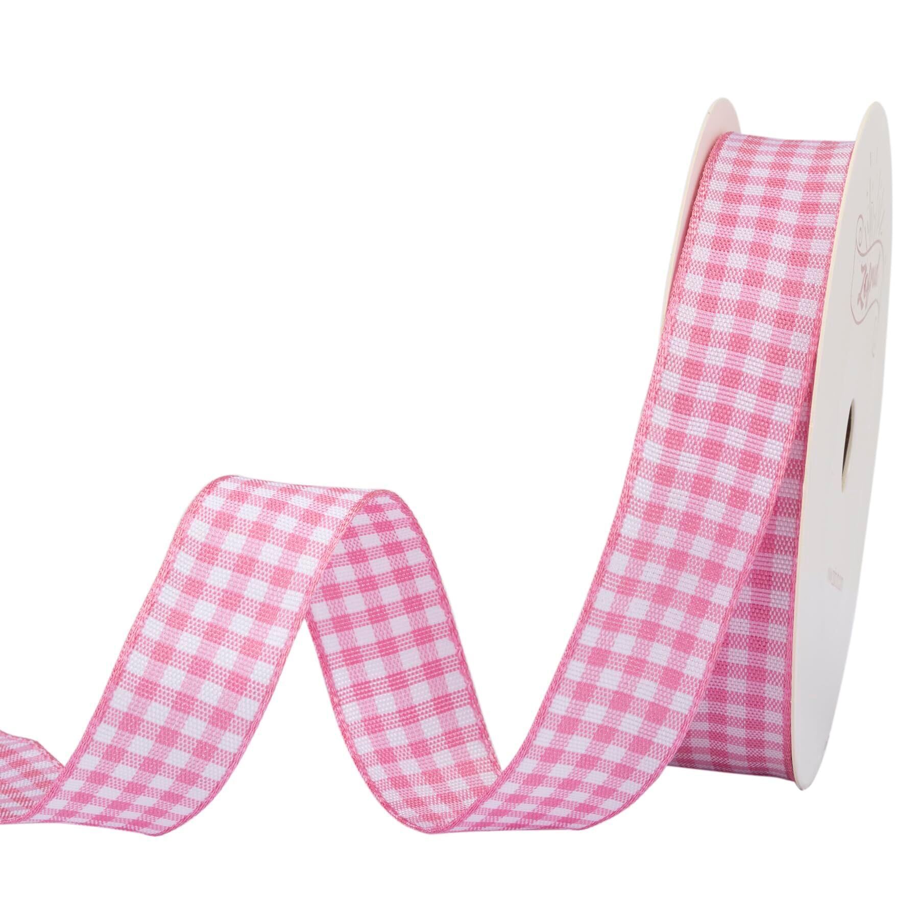 【Zofrud】チェックリボン幅16mm x 9m巻 - ハンドメイド・DIY・手芸・ラッピング・花束・ウェディングに最適 (ピンク)