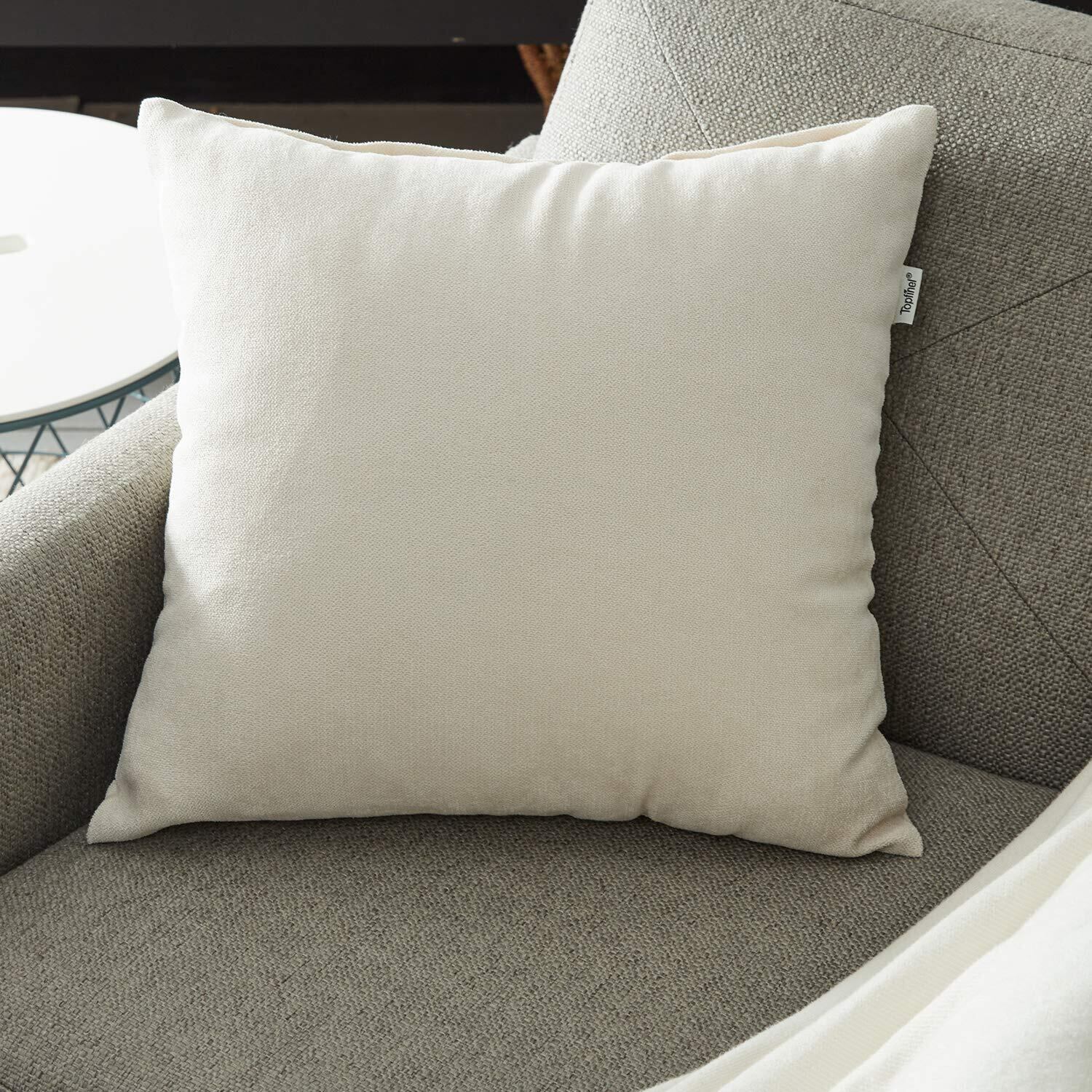Topfinel クッションカバー リネンっぽい 45×45cm 北欧 おしゃれ 綿麻 無地 ソファ背当て 装飾枕カバー 座布団カバー ホワイト 2枚セット(全10色)