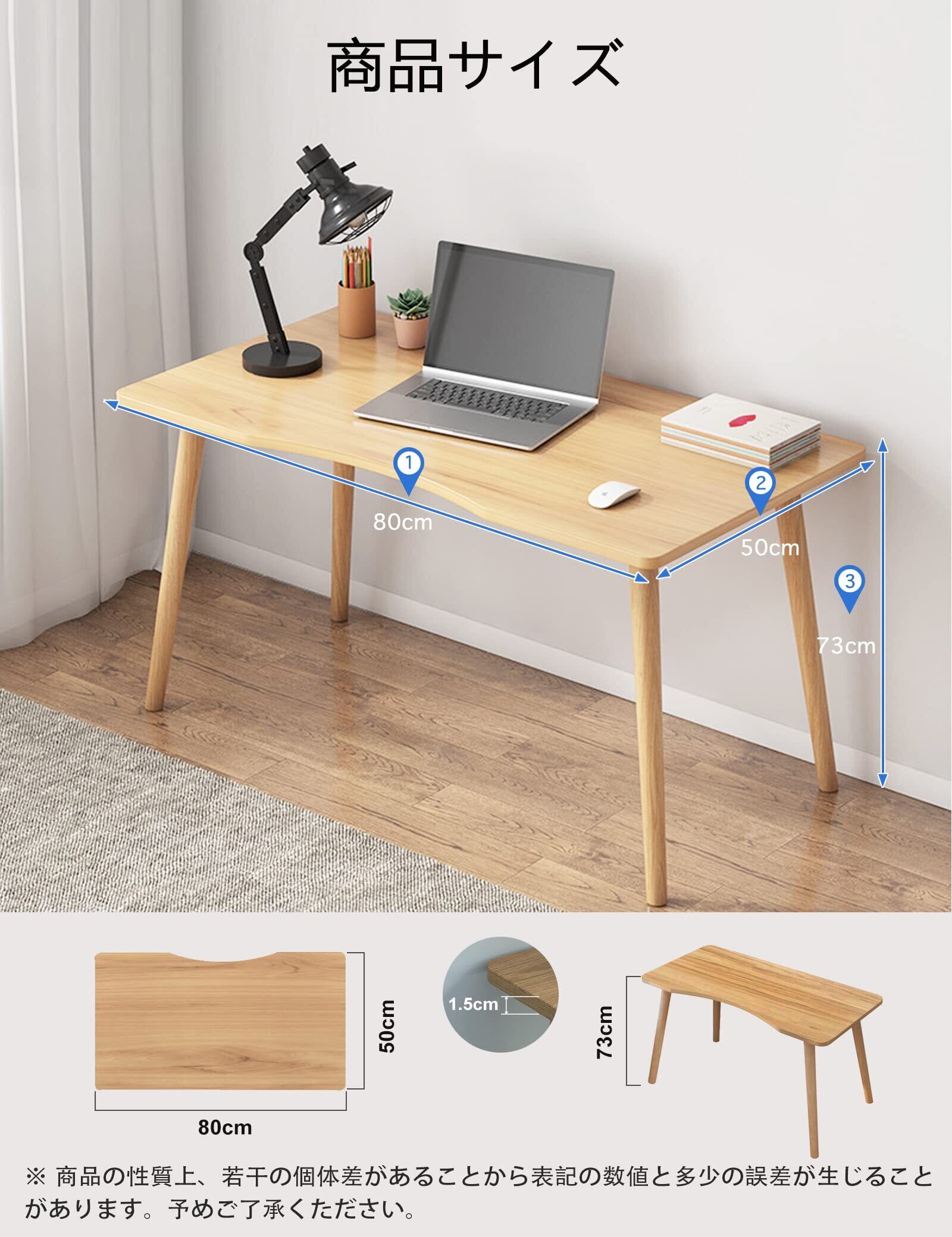 Rshtong デスク パソコンデスク 勉強机 北欧 木製 机 幅80cm×奥行50cm PCデスク 在宅勤務 リモートワーク用 おしゃれテーブル シンプル 化粧台 作業机 仕事用 組立簡単 (木目調, 幅80cm)