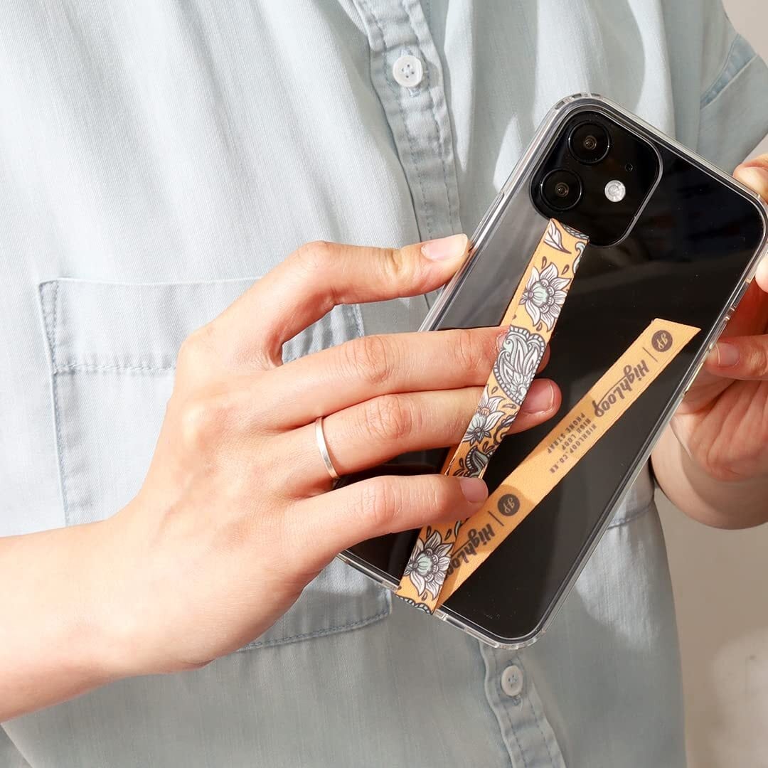 [highloop] 【ハイループ フォンストラップ スマホケース ハンドストラップ フィンガーストラップ 落下防止 ワイヤレス充電対応 phonestrap (original) (83.ペイズリーカーキ)