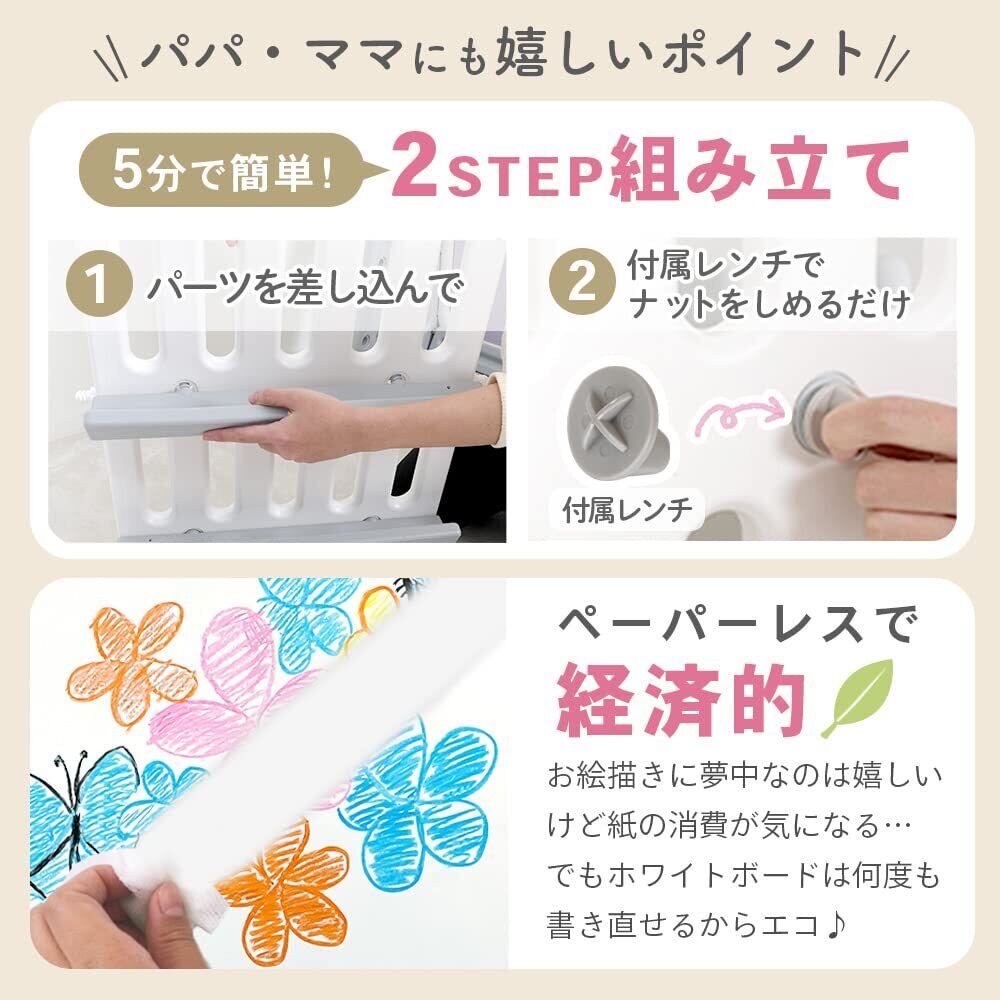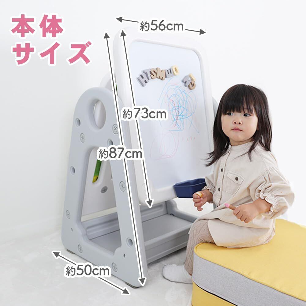 【2段階高さ調整可能】表面のホワイトボードはローとハイの2段階で高さの調整ができるから、成長に合わせて使えるのがうれしい成長とともに遊び方を変えていくこともできます!【ママもできる!5分で完成、2ステップ組み立て】特殊な工具は一切不要!付属の十字レンチを使って①パネルを組み合わせて②ナットを締めるだけの2ステップであっという間に組み立てることができるから、ママでも安心また本体は約4.8kgで掃除や移動も簡単です。【本体サイズ】W56×H73×D50cm、重さ約4.8kg【商品について】商品ページはイメージです。ホワイトボード用クレヨン、マーカー、クリーナー、収納BOX、マグネット等は付属しておりません。予めご了承ください。