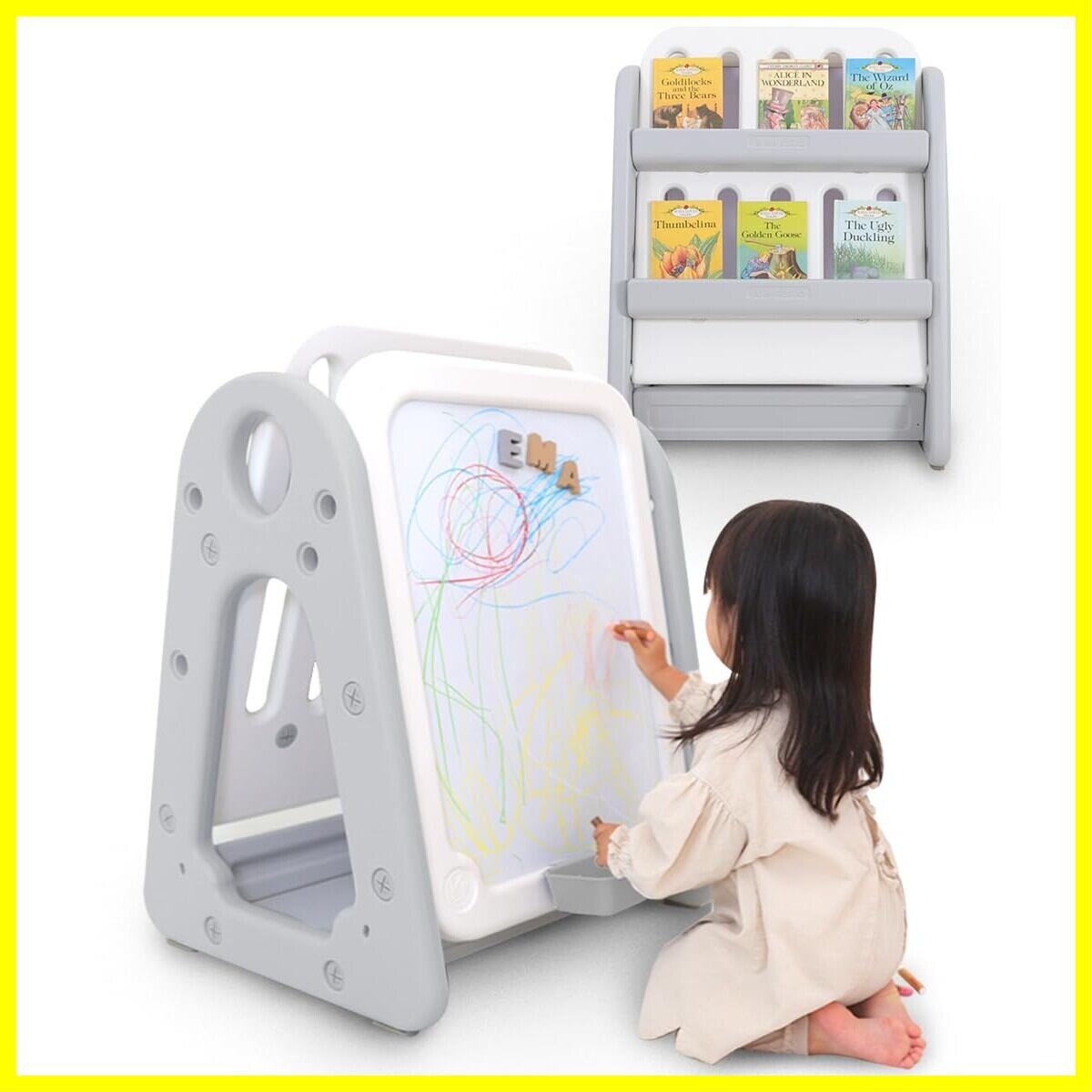 (ケラッタ) おえかきボード ホワイトボード 子供 イーゼル 知育 本棚付きでお片付け練習に 大きいサイズ プレゼントに
