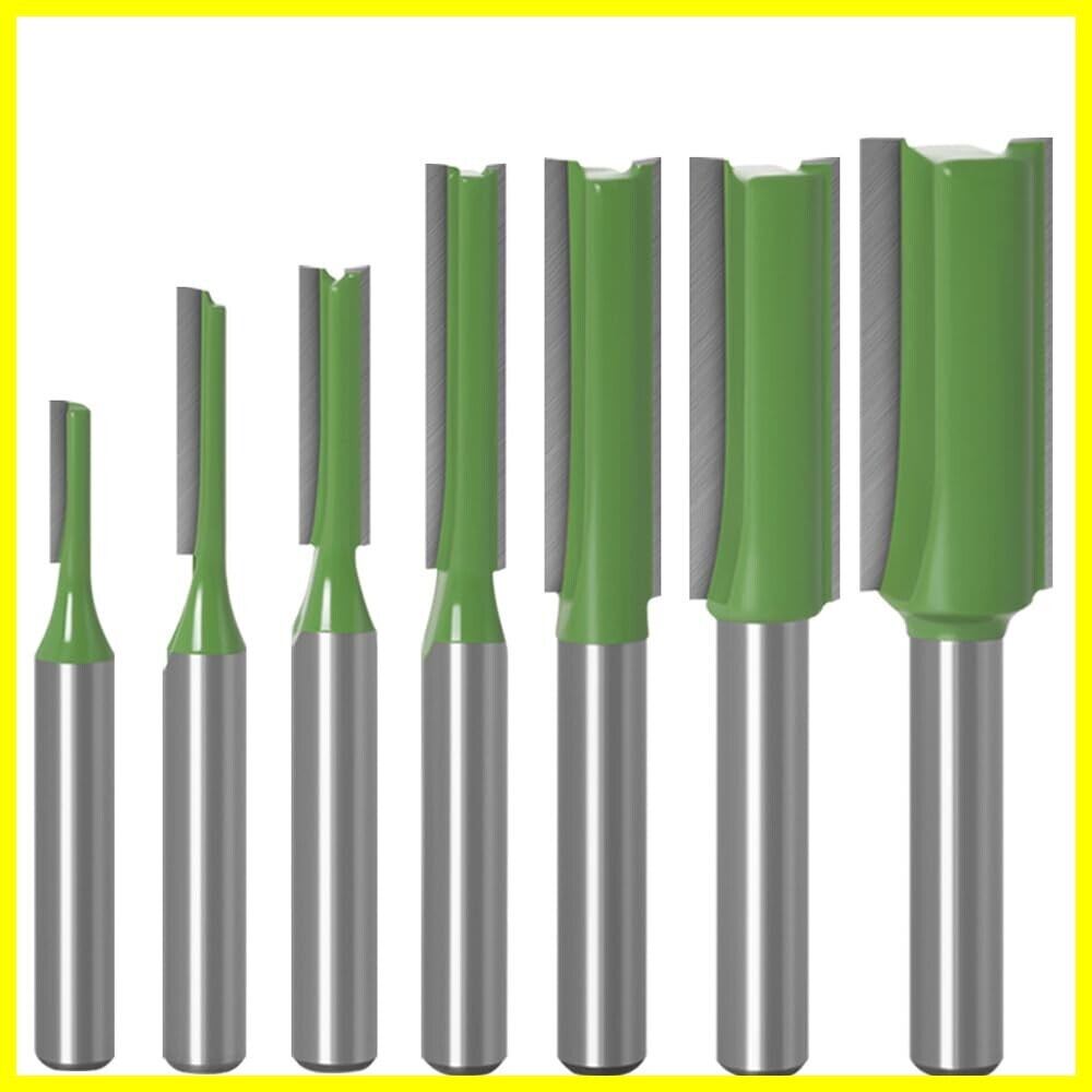 VIVIZHWHトリマー ビット シングル/ダブルフルートビット 超硬ビット ルータービット トリマービット 舌・溝カッター 木工用工具 6mm軸 7本組 緑