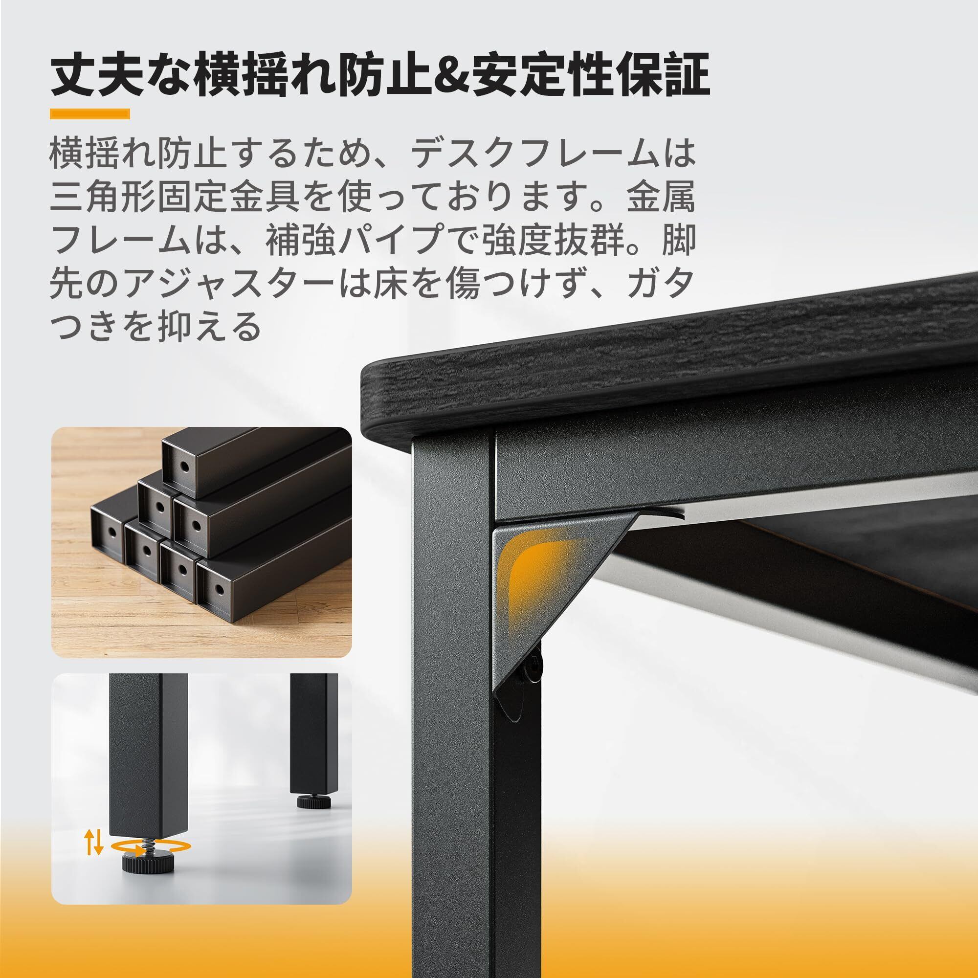 【安定性&耐用性】横揺れ防止するため、デスクフレームは三角形固定金具を使っております。天板は水・熱・傷・汚