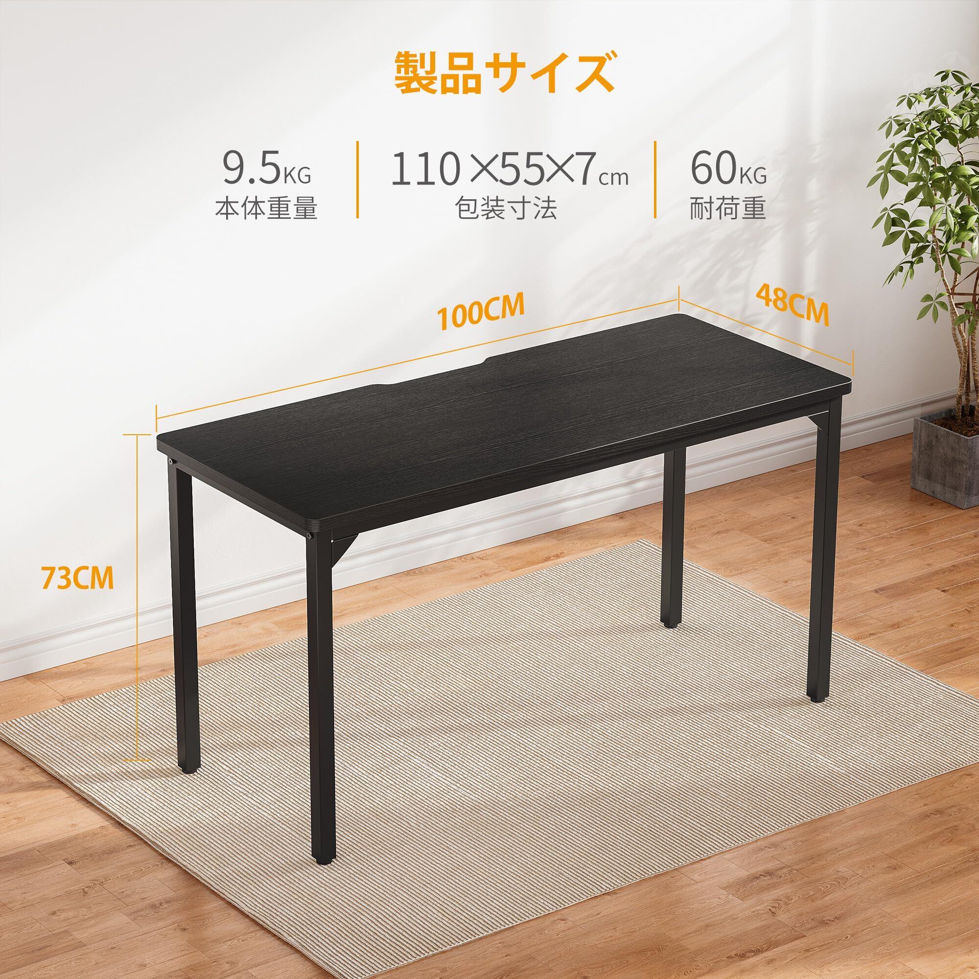 CubiCubi デスク 勉強机 組み立て簡単 頑丈 パソコンデスク 机pcデスク 一人暮らし 幅100cm*奥行き48cm ブラック