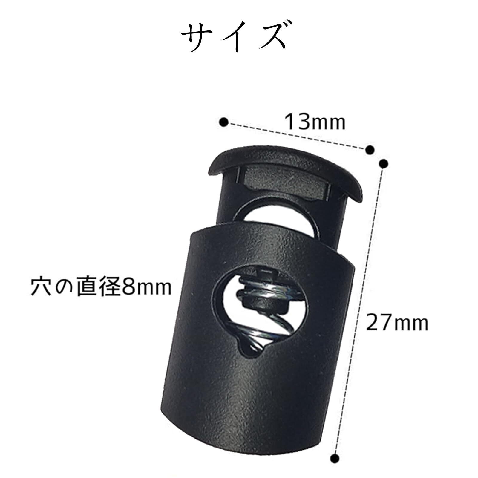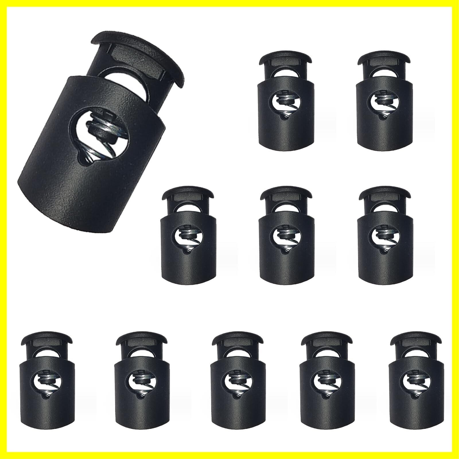 [YINKE] スプリングコードストッパー 穴径約8mm 黒 コードロック 樽型 補修用 スポーツウェア用 トグルストッパー 交換 リュックサック 多用途 (10個入り)
