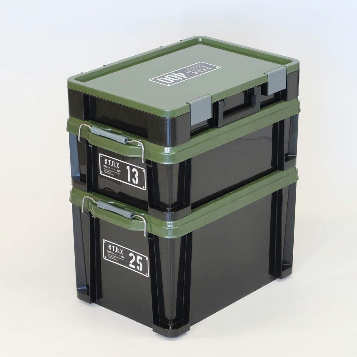 当社製品#13/#25サイズのフタ付きコンテナの上に並べてスタッキング(積み重ね)することも可能。
