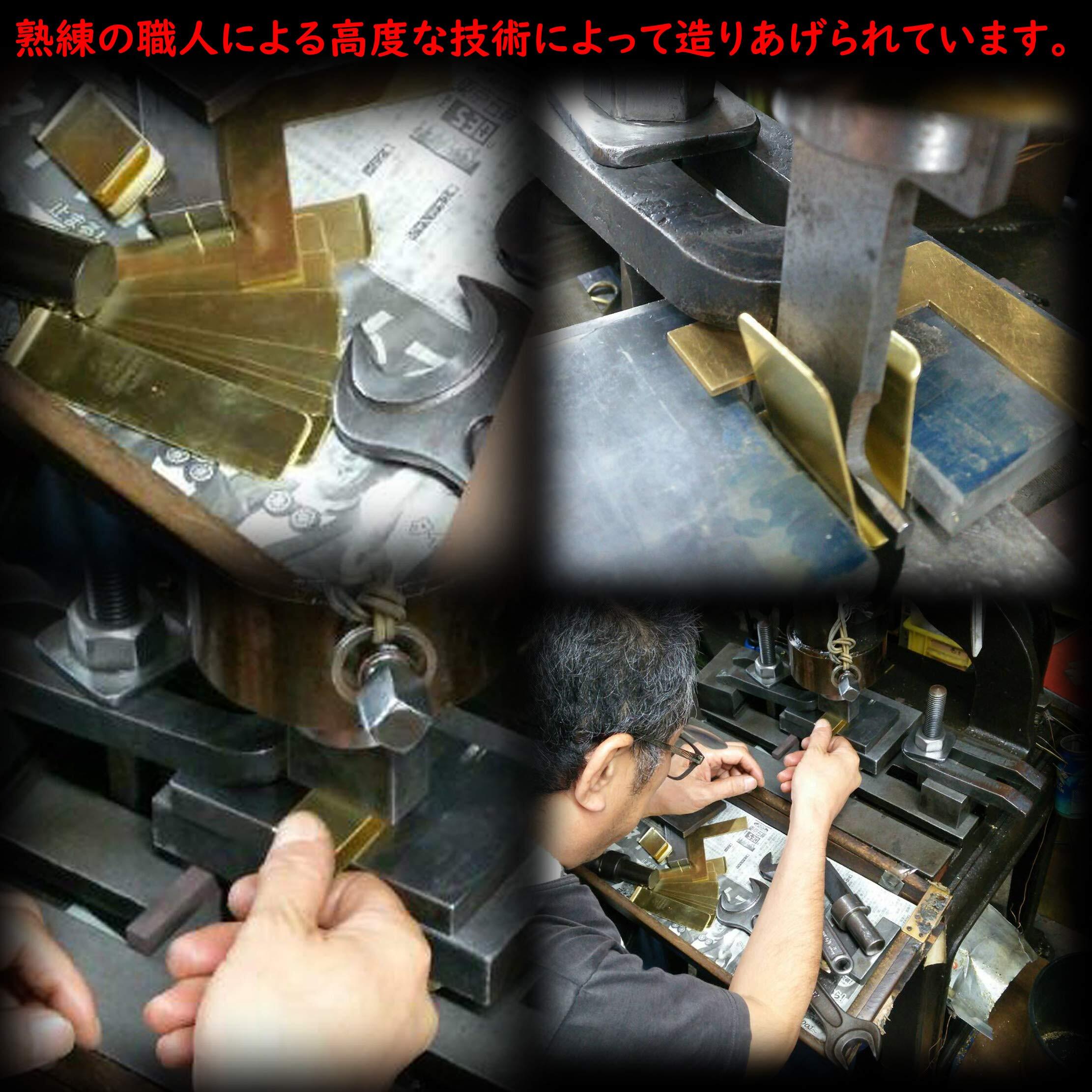 スペック:サイズ/h53 × w21 × d8mm、重量/21g、素材/真鍮・メッキ加工、原産国/日本製。MADE "ALL" IN JAPAN(真鍮生地製造、メッキ加工すべて国内で行っています)