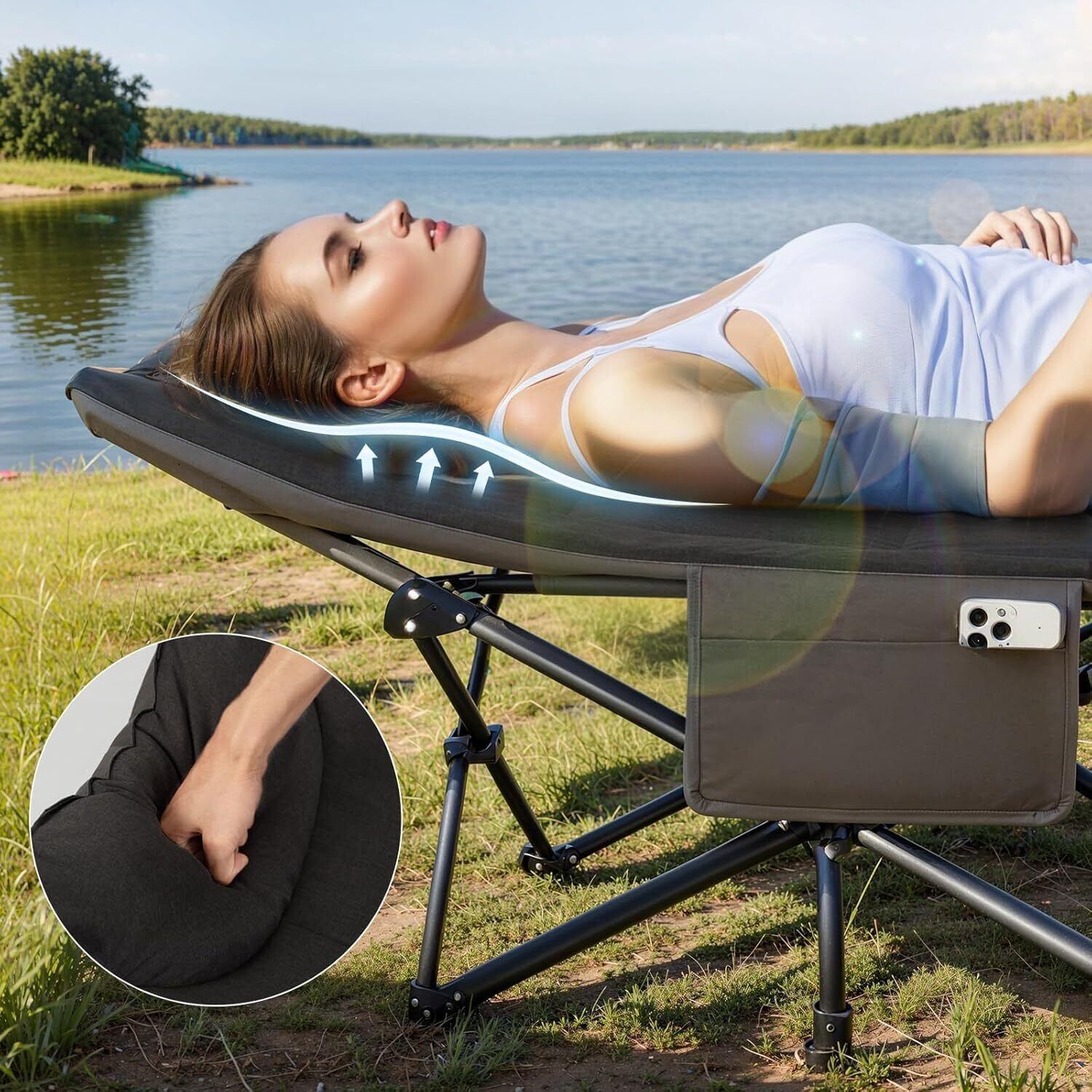 [快適な睡眠環境]超ソフトなマットを使用しており、取り外し不要で折りたたみベッドと一体型のデザインです。安心して快適に眠れます。