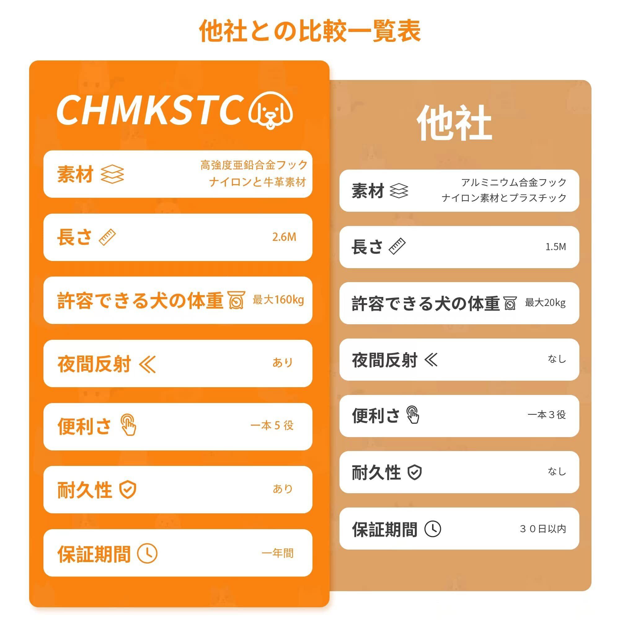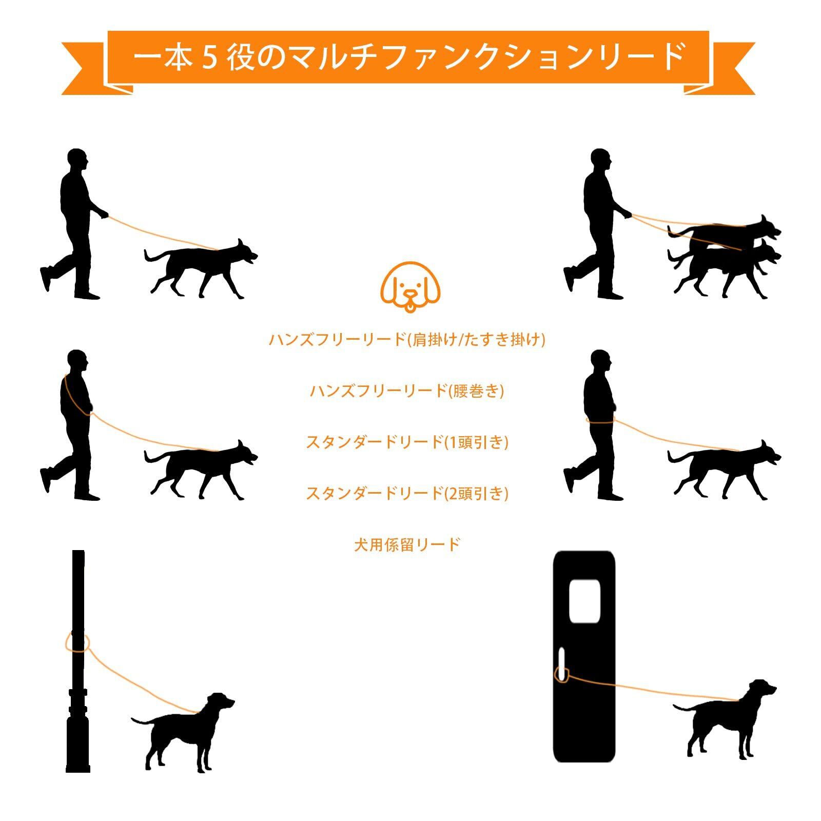 CHMKSTC 犬リード 肩掛けリード ショルダーリード ハンズフリー犬 リード 中·大型犬しつけ用リード 5in1多機能 全長2.6M 直径12MM 160kgまで対応 2頭犬同時引き可能 腰に掛けいる可能 両手解放 調節可能 夜光 反射素材 迷子防止 脱走防止 外れにくい ランニング/ジョギング/訓練/散歩用 ペット用 スリップ(オレンジ)
