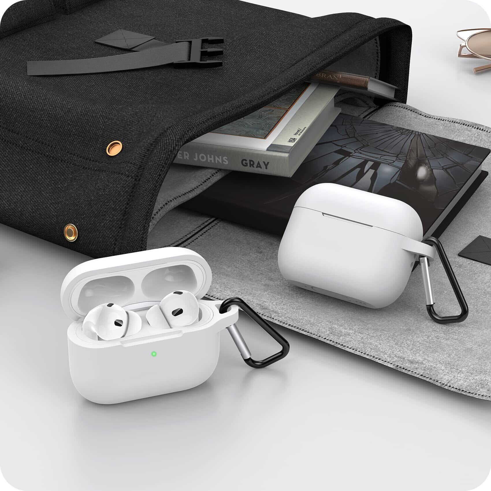 NIMASO ケース AirPods Pro 2 第2世代 2022 専用 カバー エアーポッズ プロ 2世代 シリコン 保護 ケース カラビナ付き ワイヤレス充電対応 (ホワイト) NEC22H564