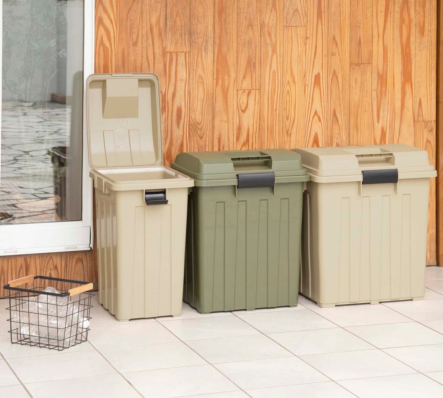 新輝合成 トンボ ゴミ箱 連結可能 ハンドル付 45リットル カーキ 幅33.5×奥行41.5×高さ60.5cm 蓋付き 分別 丈夫 屋外 ベランダ 大きい アウトドア 日本製