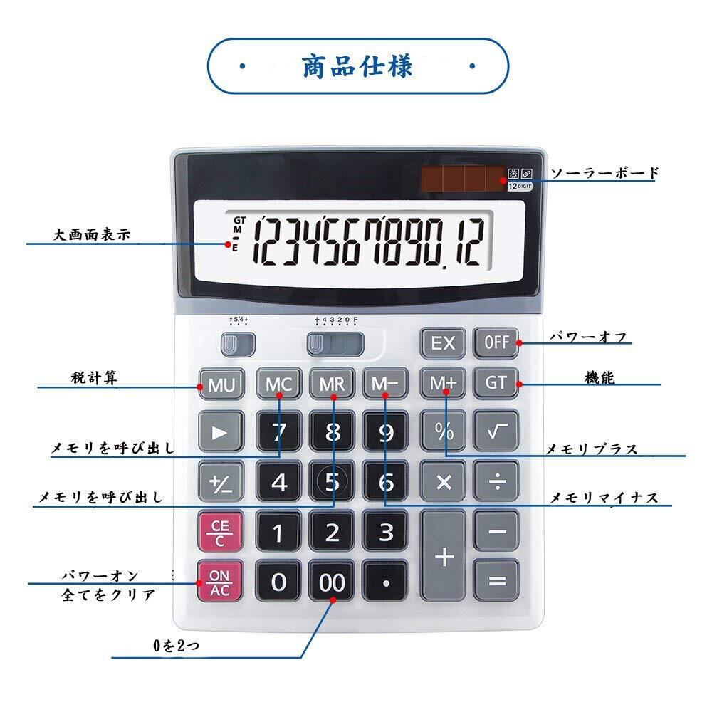 OFFIDIX 電卓 12桁 計算機 大型 簿記 卓上計算機 おしゃれ 大型ディスプレイ ソーラー電卓 ソーラーと電池二重電源 携帯便利