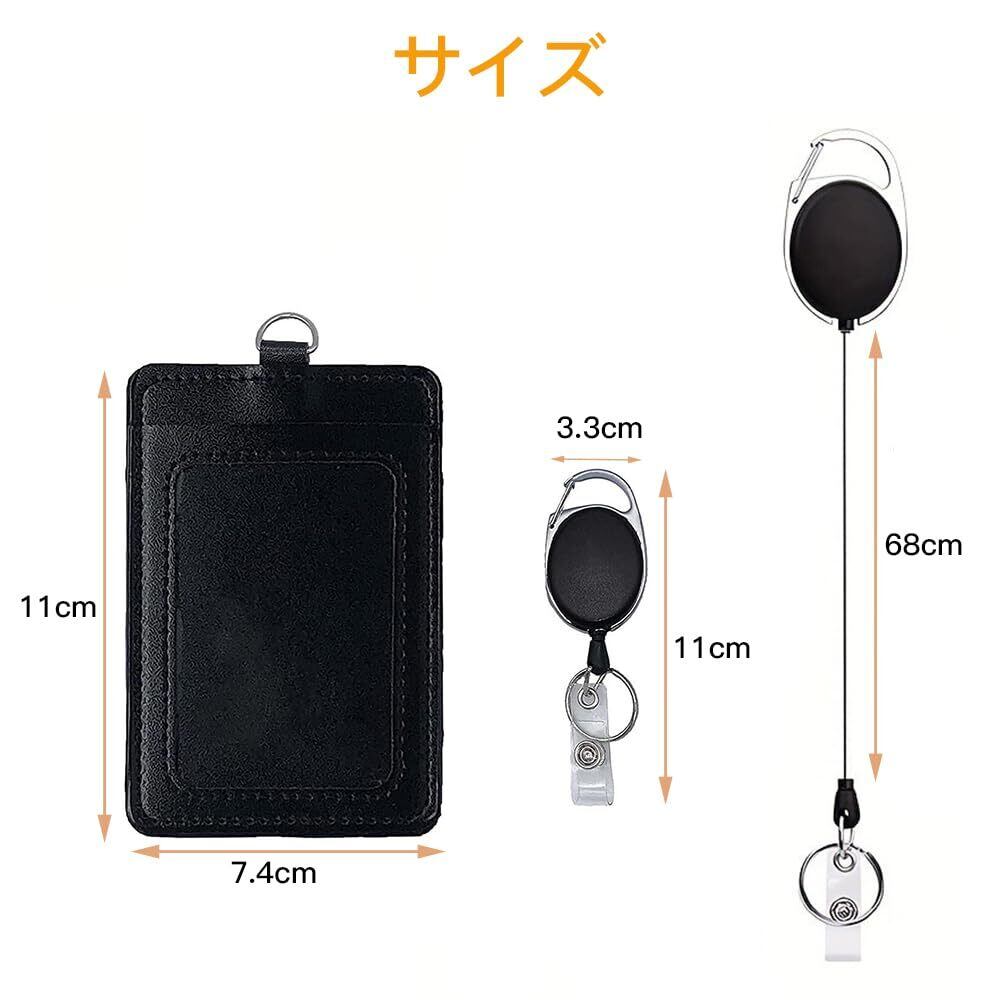 LOYELEY 伸縮 定期入れ リール付き パスケース カード入れ ICカード ネーム IDカードケース IDカードホルダー PUレザー 軽量 薄型 おしゃれ スキミング防止 通学 通勤 電車 男女兼用 ブラック