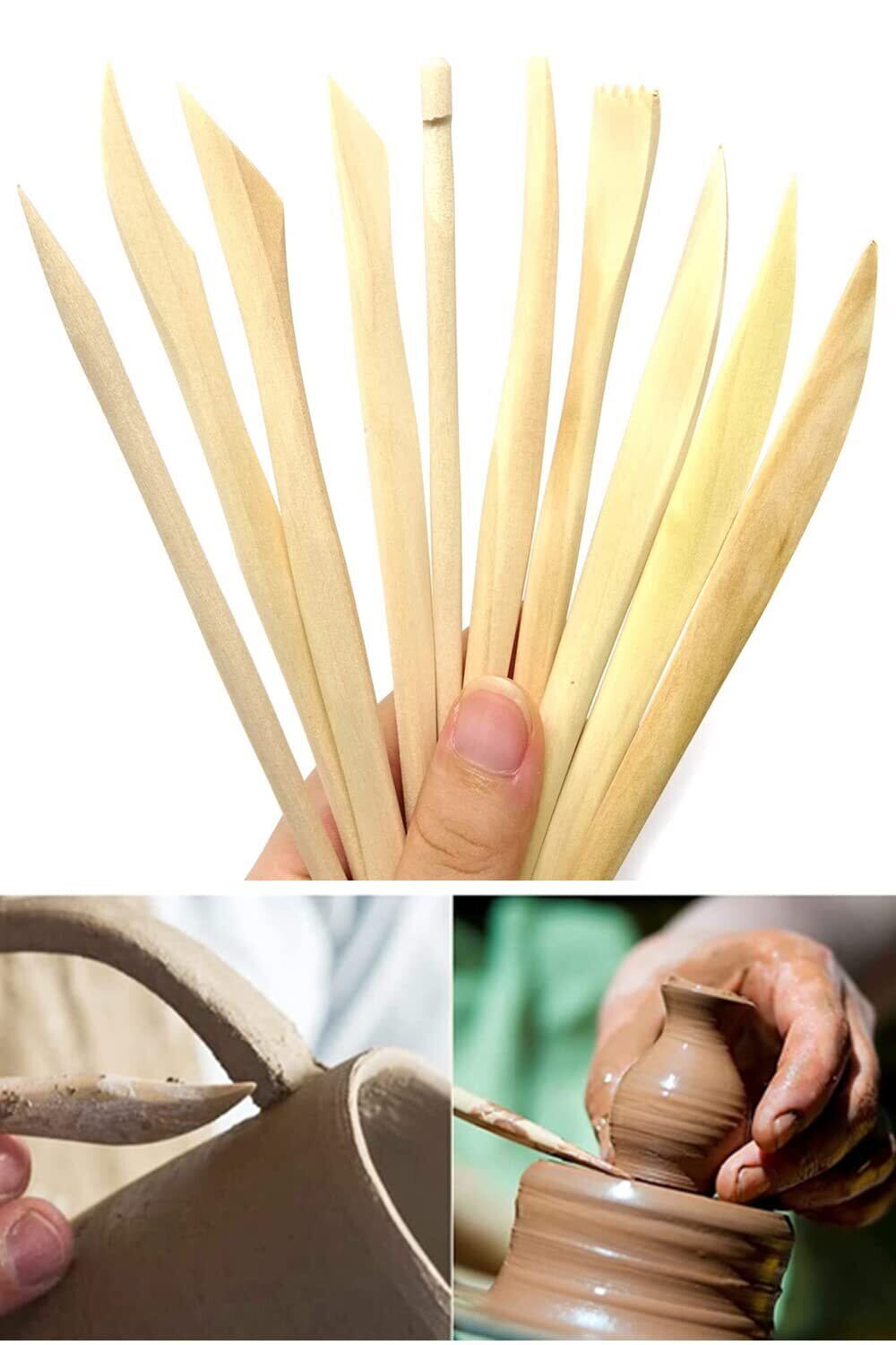 【使いやすい】木製のボディで使いやすく、造形、粘土細工用の初心者入門ツール。粘土細工などを制作する際に役立つ粘土道具です。よく使う形の彫塑ぺらを揃えって、使いやすい陶芸道具です。いろんな形が彫刻できます。