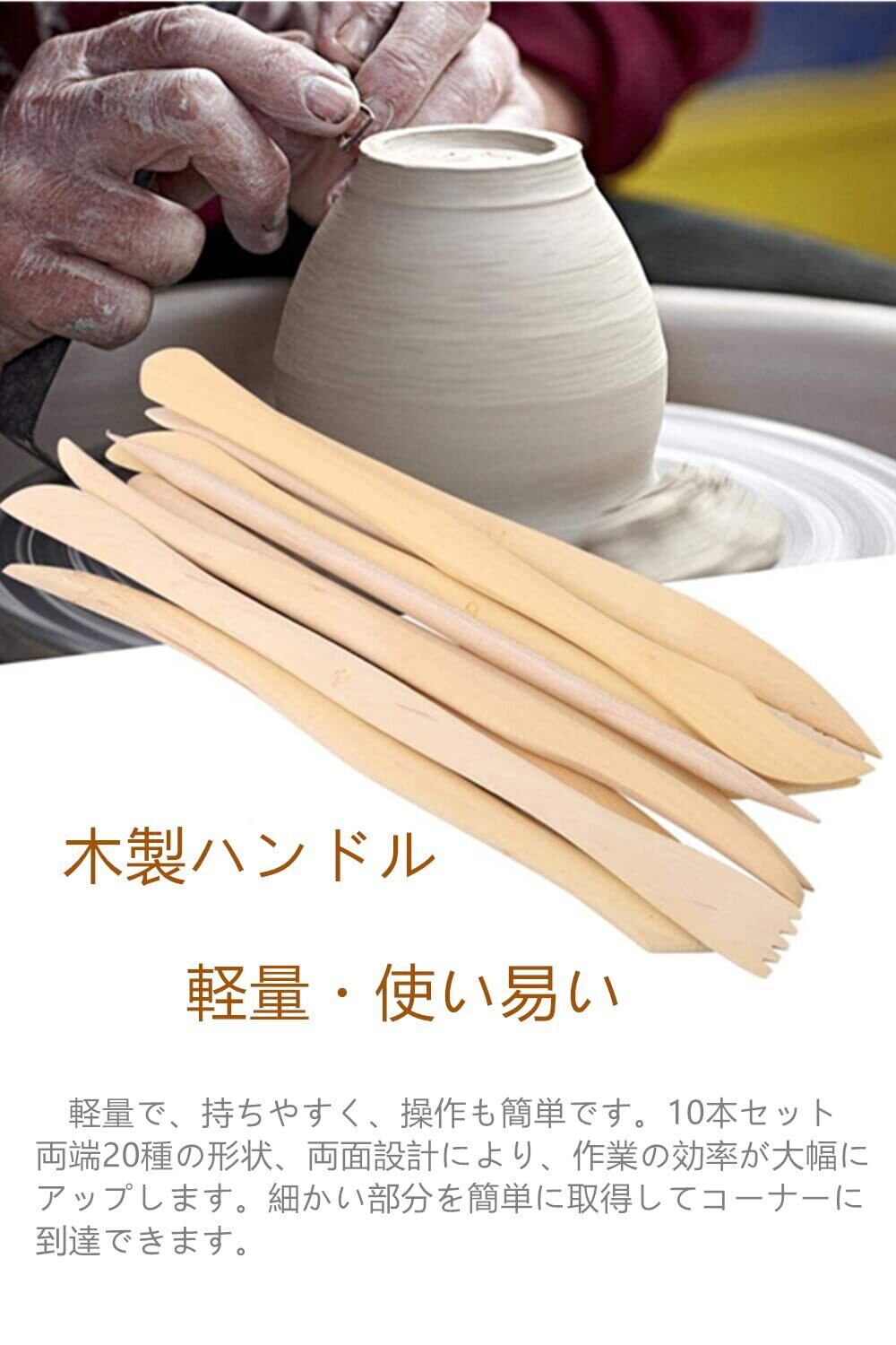 粘土ヘラ 粘土 道具彫刻ツール陶芸工具 オーブン粘土道具 陶器 造形 ヘラ 木製ハンドル持ち易い (10本 セット)