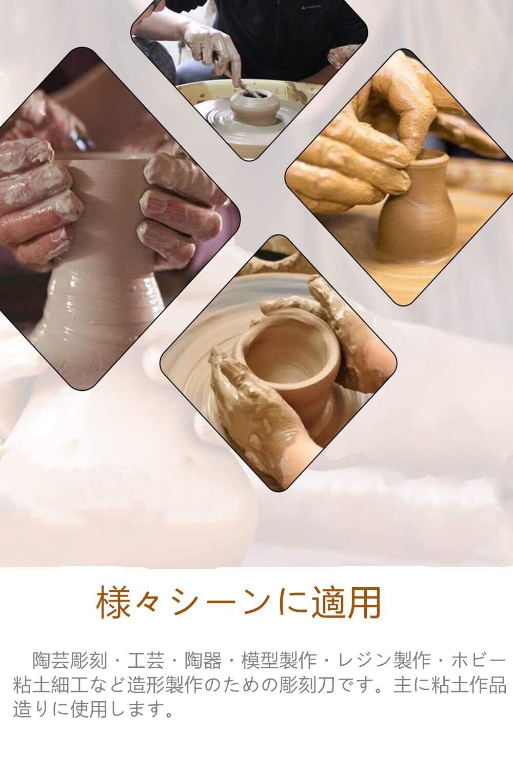 【適用範囲】陶芸彫刻・工芸・陶器・模型製作・レジン製作・ホビー・粘土細工など造形製作のための彫刻刀です。主に粘土作品造りに使用します。