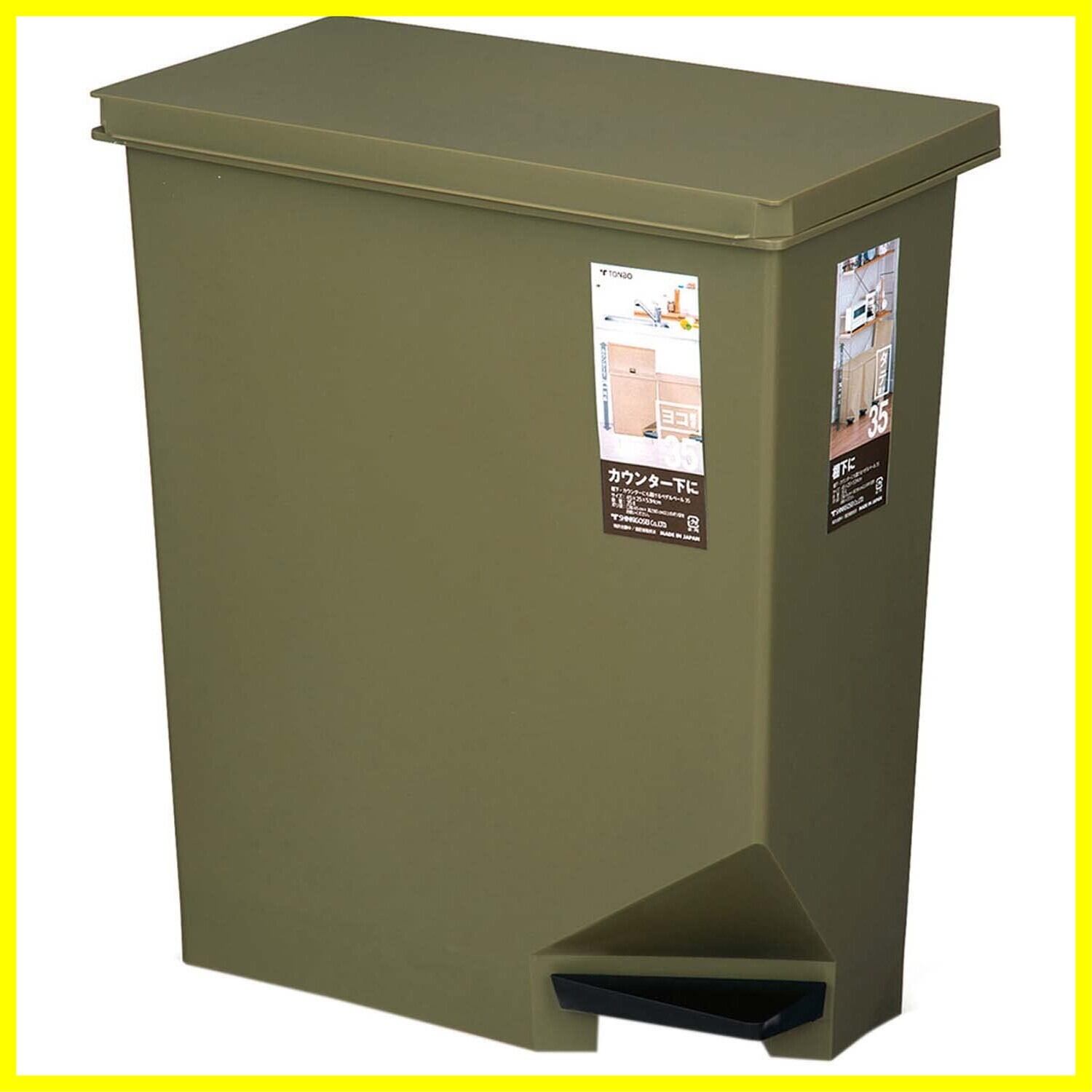 新輝合成(Shinki Gosei) トンボ ユニード ゴミ箱 35リットル 軽いペダルでサッと開く スイッチペダル カーキグリーン 奥行45×幅25×高さ53cm カウンター下 にも置ける 蓋付き 日本製