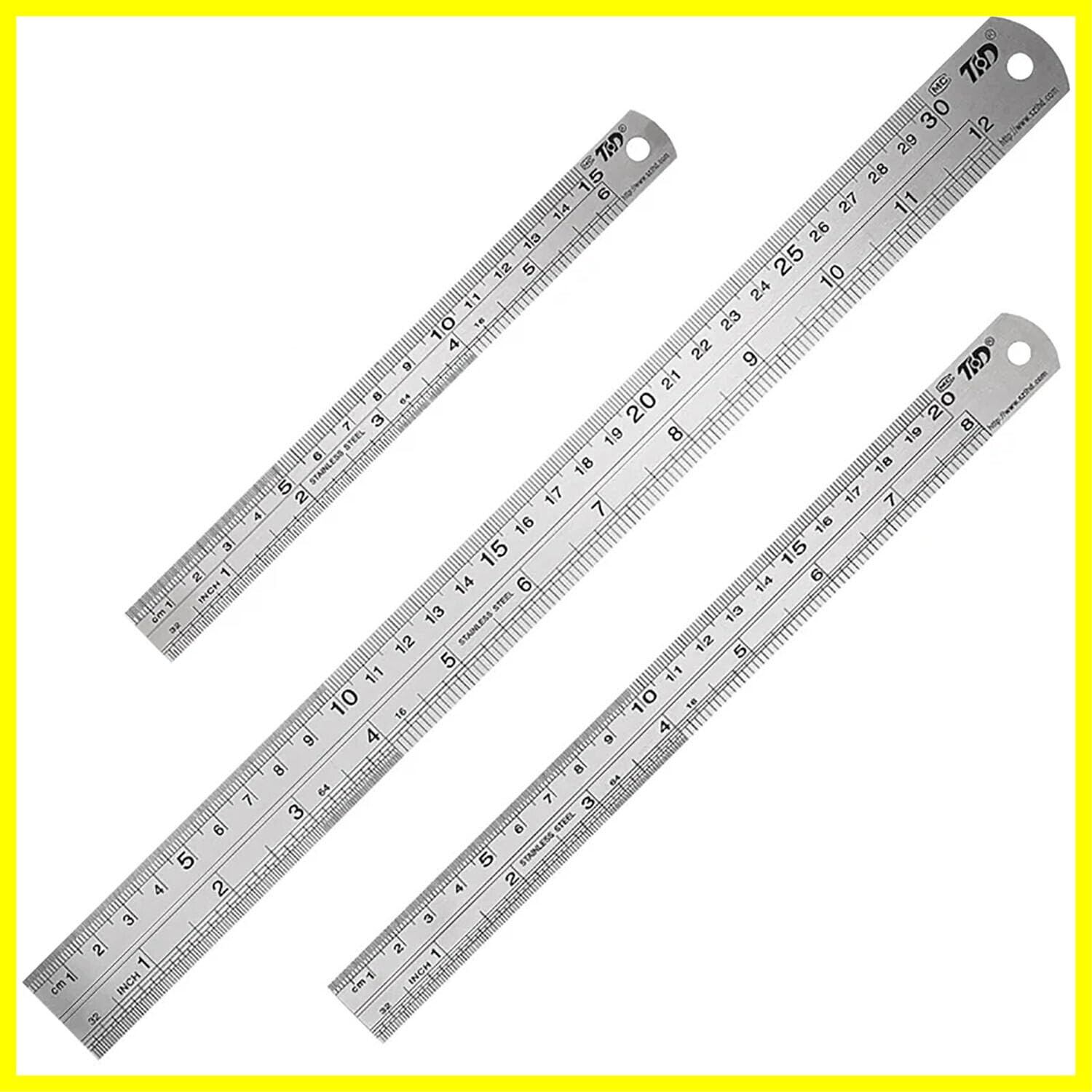 GOOMAND ステンレス定規 直線 定規 測定工具 両側 (センチメートル・インチ表示)30CM/12inch+20CM/8inch+15CM/6inch 測量用品 定規 文房具・オフィス用品 【3種セット】