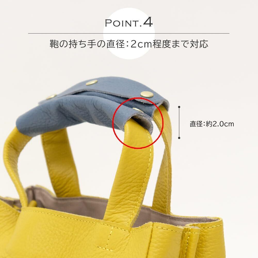 【日本製 「姫路レザー」の取っ手カバー】日本が誇る、姫路産こだわりの牛革を贅沢に使用。本革製品なので耐久性を兼ね揃えております。ビジネスバッグ、レザー製バッグや キャンバス帆布 コットントート、かごバッグなどの持ち手にも合わせやすい。鞄の持ち手の直径が2.0cm程度まで装着可能となっております。