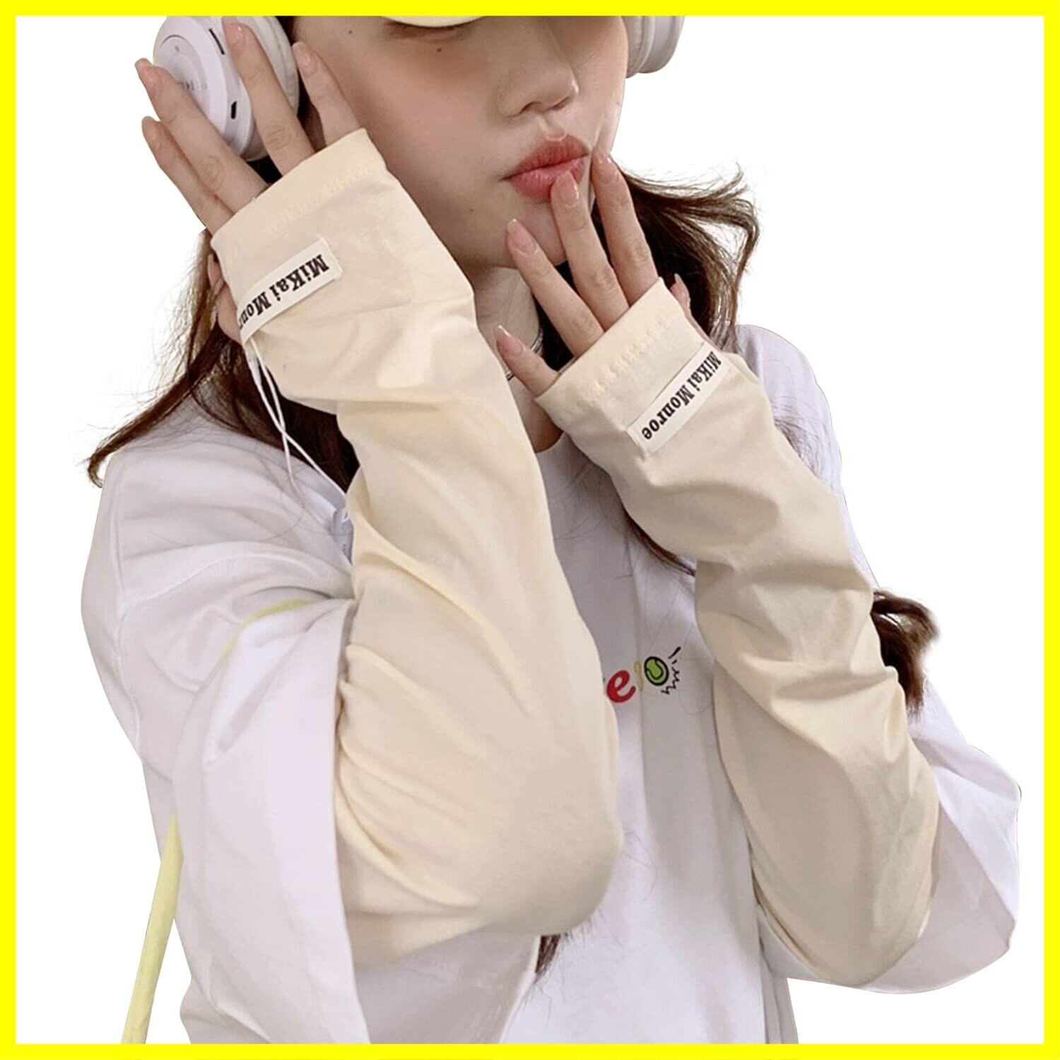アームカバー レディース UVカット 夏 日焼け防止 アームスリーブ【UPF50+・紫外線対策・ゆったり・手の甲までカバー・】レディース UVカットアームカバー 日焼け止め UV腕カバー 日焼け対策 吸汗速乾 指穴あり ズレ防止 可愛い おしゃれ 蚊避け レディース メンズ 四季 男女兼用 (純色1-ベージュ)