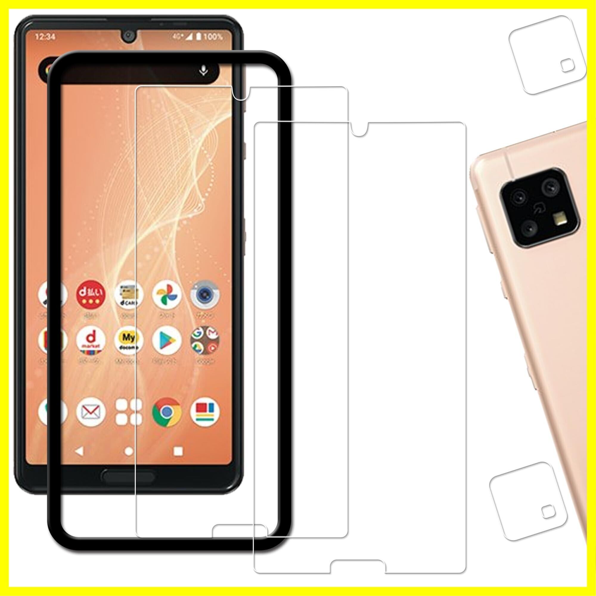 HKKAIS aquos sense4 フィルム【2+2 セット】ガイド枠付き 日本製硝子採用 AQUOS sense4 SH-41A Sense4 Lite SH-RM15 / AQUOS sense5G SHG03 / SH-53A 用 ガラスフィルム カメラフィルム 強化 ガラス 液晶画面 保護フィルム