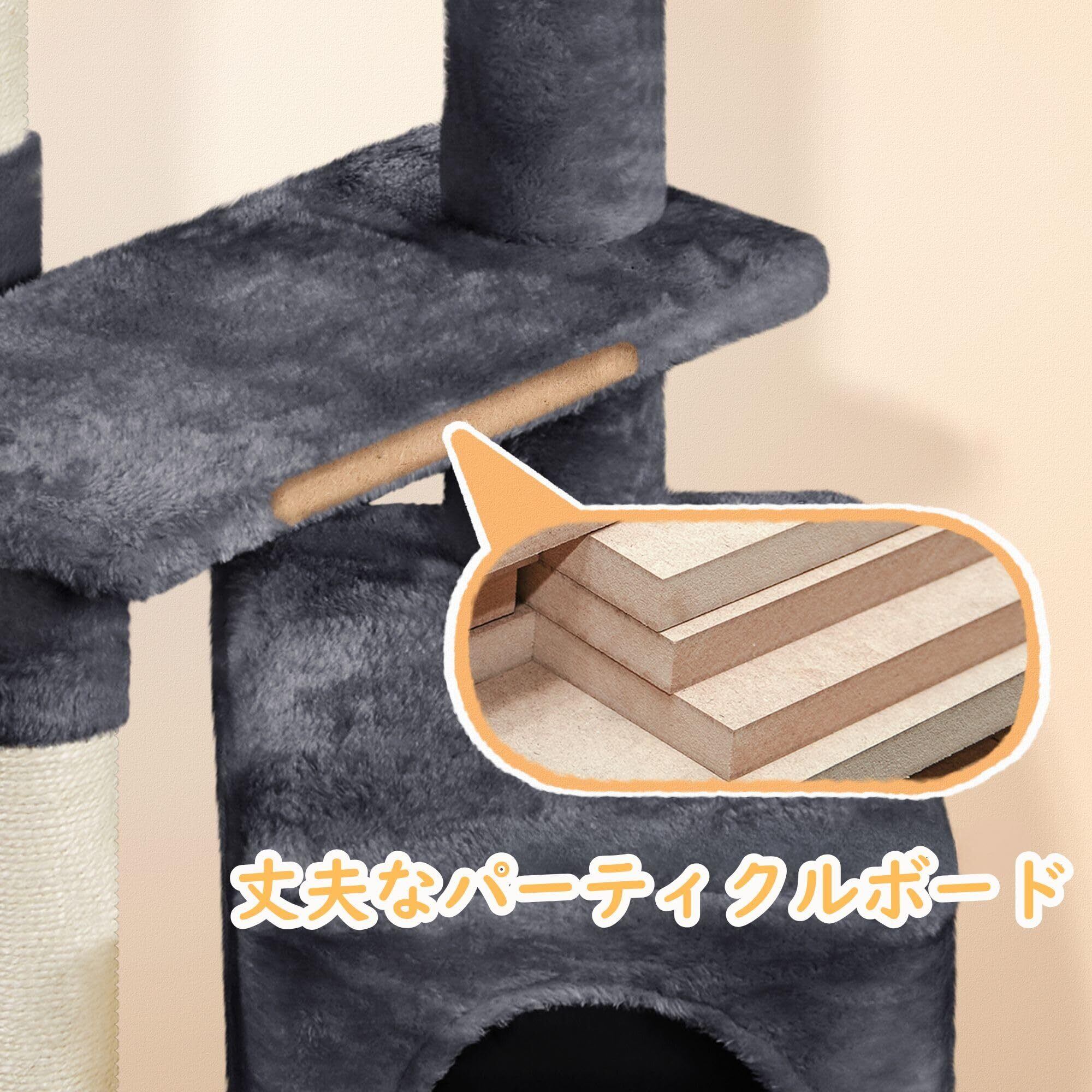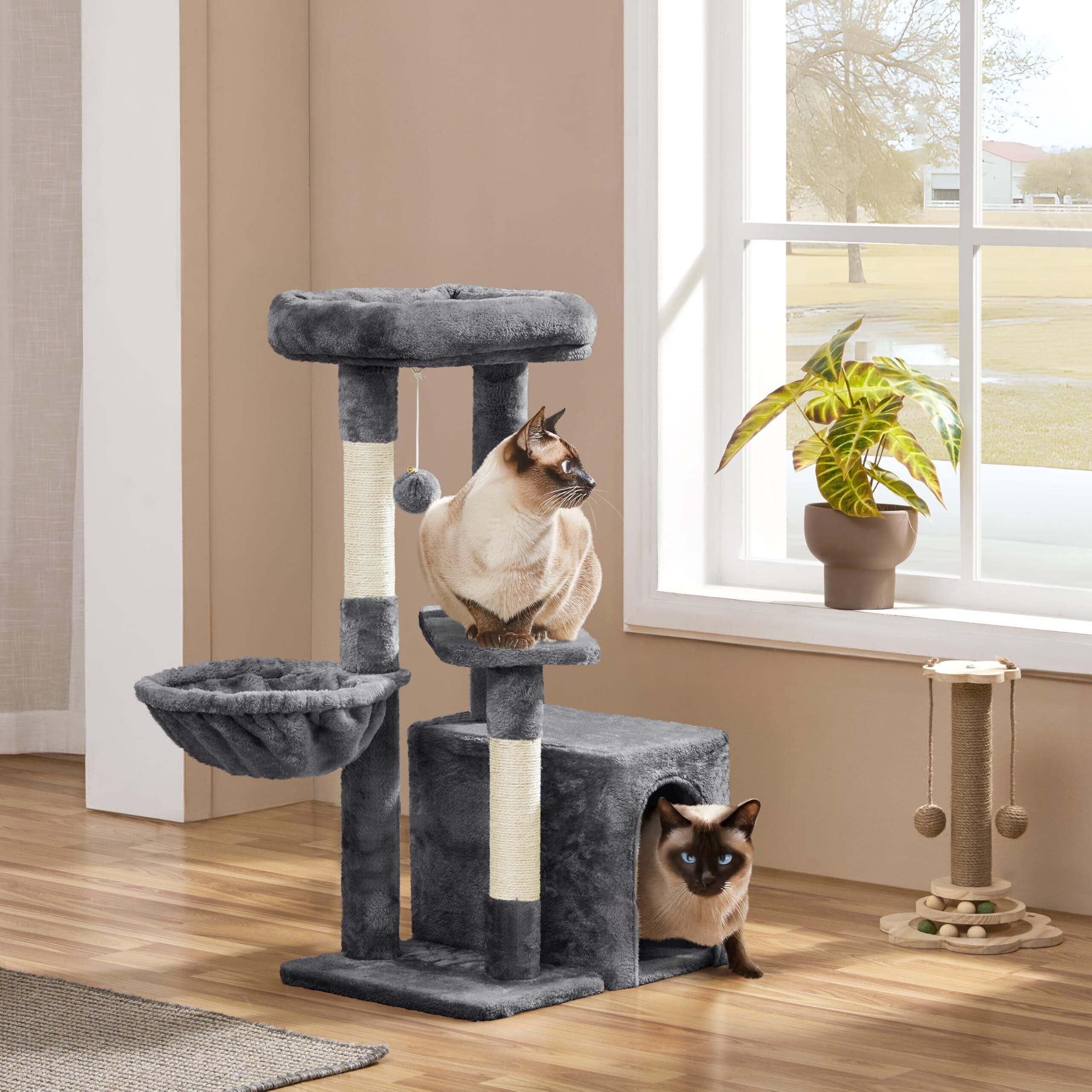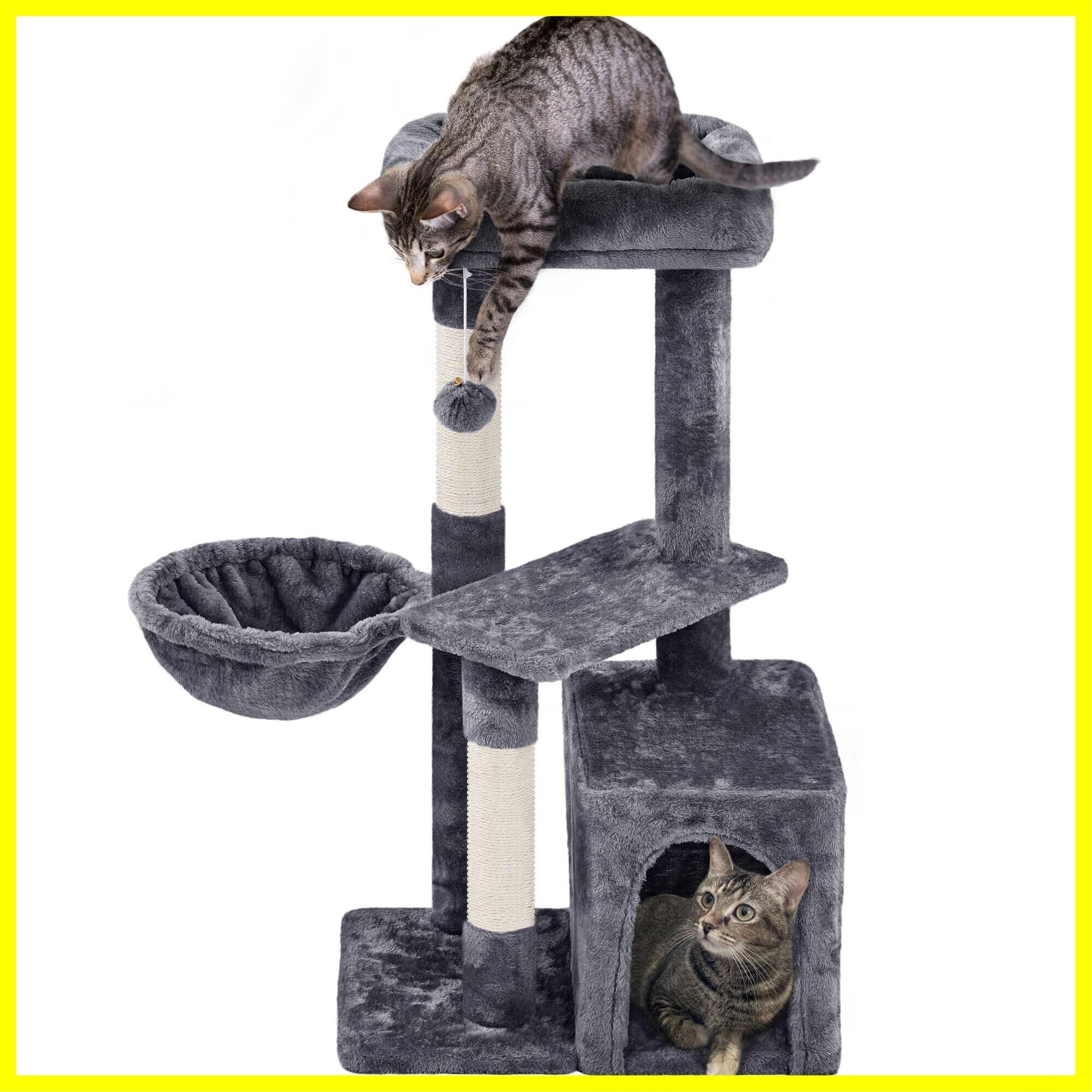 Yaheetech キャットタワー 中型 シニア猫 子猫 多頭飼い 猫タワー 爪研ぎ 広いハウス ハンモック 据え置き おもちゃ付き 天然サイザル 転倒防止 高さ87cm (ダークグレー)