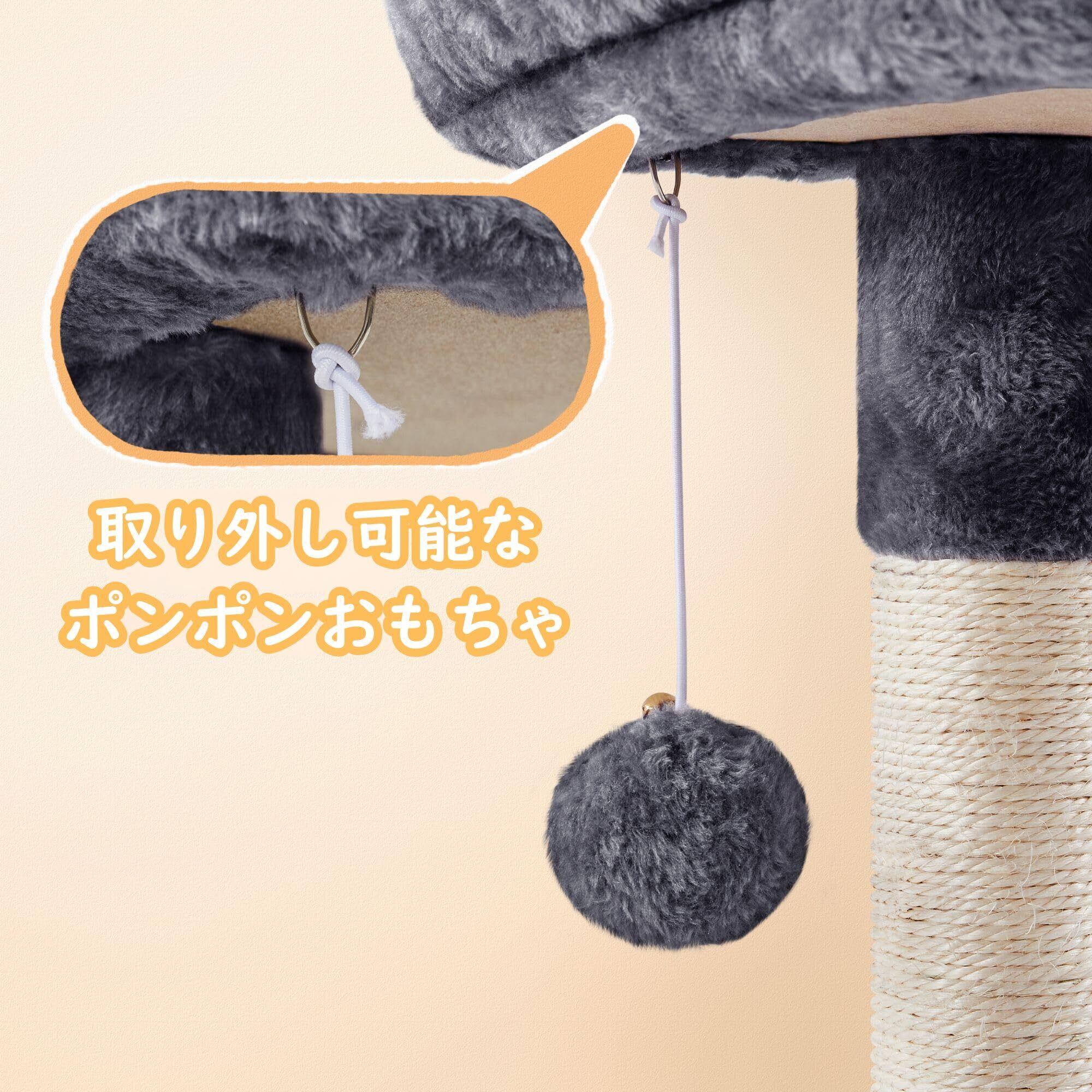 【省スペースで楽しさ満載】コンパクトながら、展望台・隠れ家・爪とぎポール・ポンポンおもちゃなど、猫ちゃんの「大好き」が詰まった多機能タワー。お部屋の隅にもすっきり収まります。