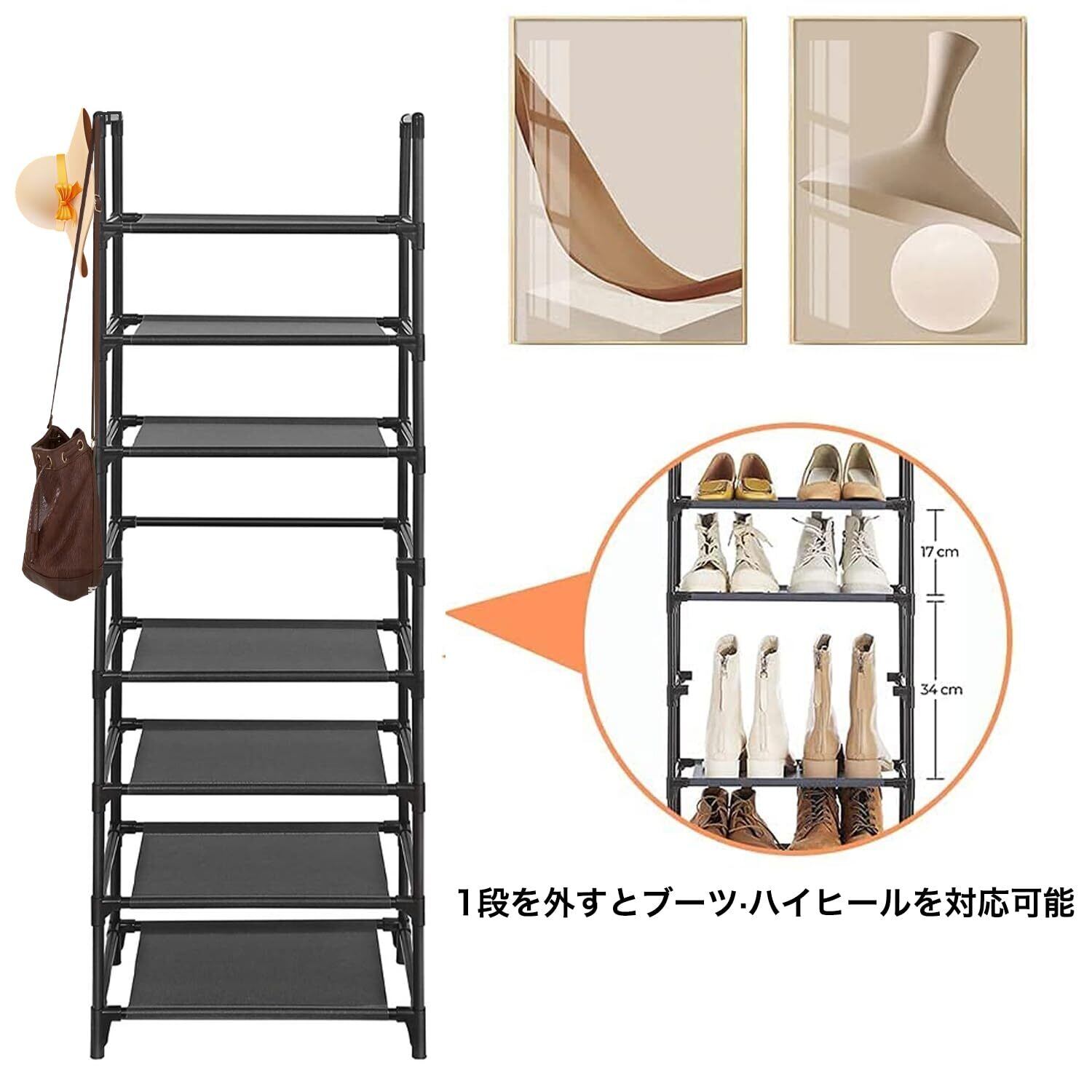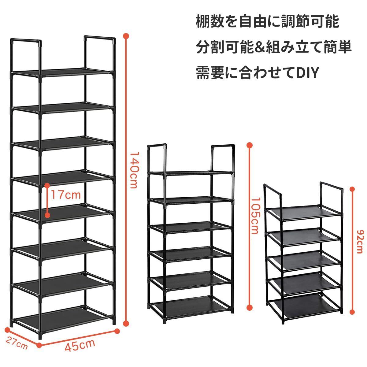 シューズラック 8段 靴収納 14-16足 シューズラックスリム 靴棚 下駄箱 省スペース シューズボックス スリム 玄関に靴を効率収納 靴入れ 組み立て式(幅約45×奥行28×高さ140cm)