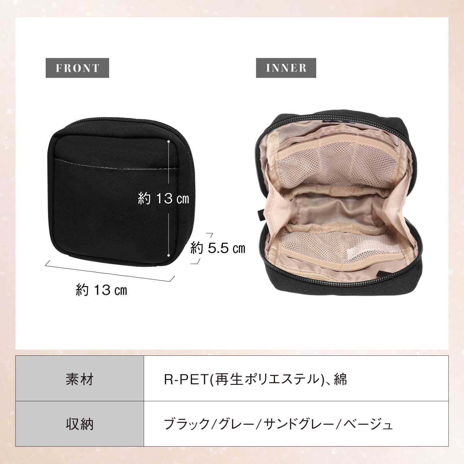 【耐久性抜群の素材】アウトドアバッグにも使われる耐久性を備えた900Dの高密度、高強度素材を採用しております。【シンプルなデザインでシーンを選ばず使える】デザインは極力シンプルに使いやすく、マットブラックのファスナーで大人な雰囲気を印象付けます。 外側ポケット×1 内側ポケット×7(フリーポケット×1、メッシュポケット×5、ファスナーポケット×1) サイズ:約12.5cm×約13cm×約4.5cm 本体重量:約70g 素材:R-PET(リサイクルポリエステル)