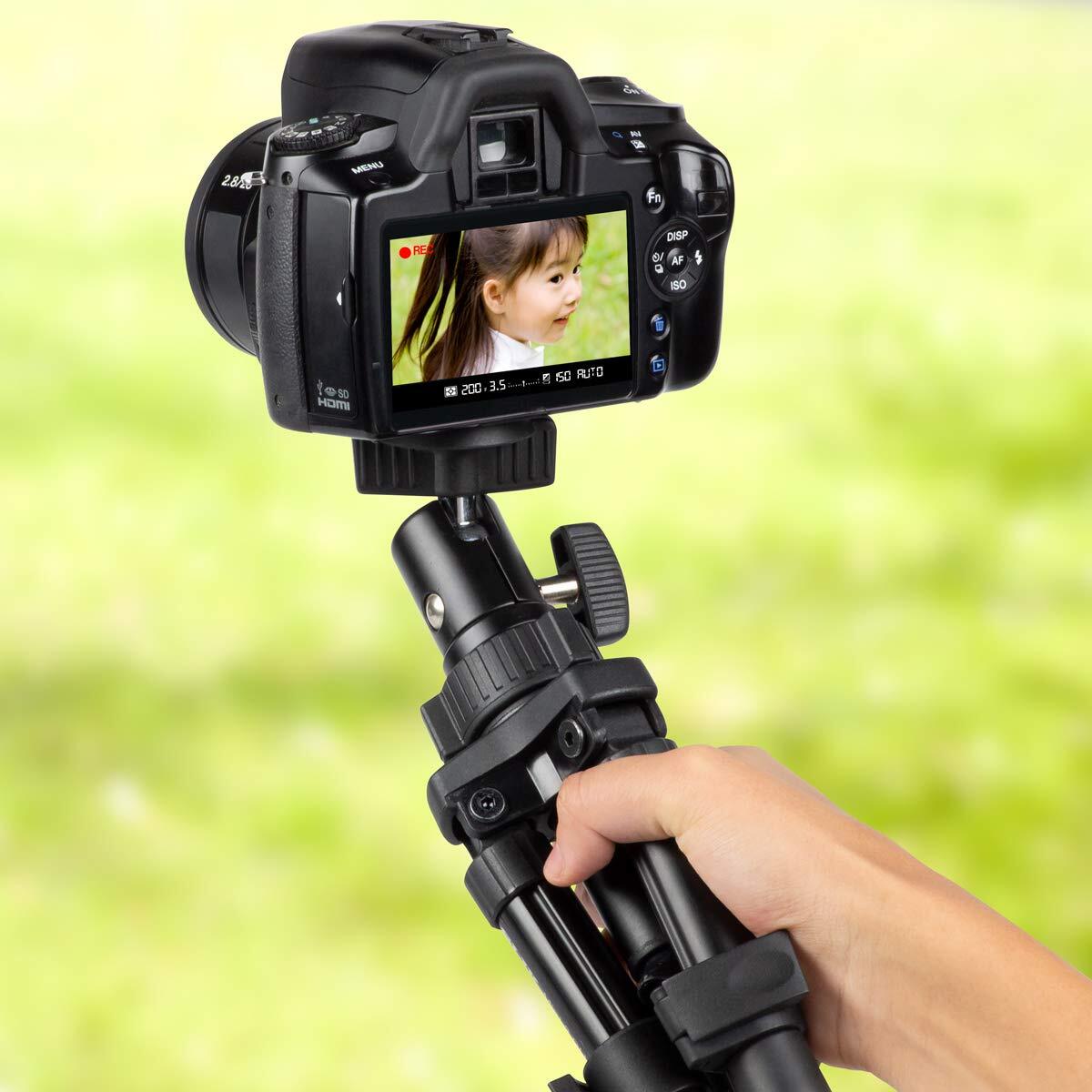 自由に角度を変えることができる自由雲台を搭載した、卓上ミニ三脚