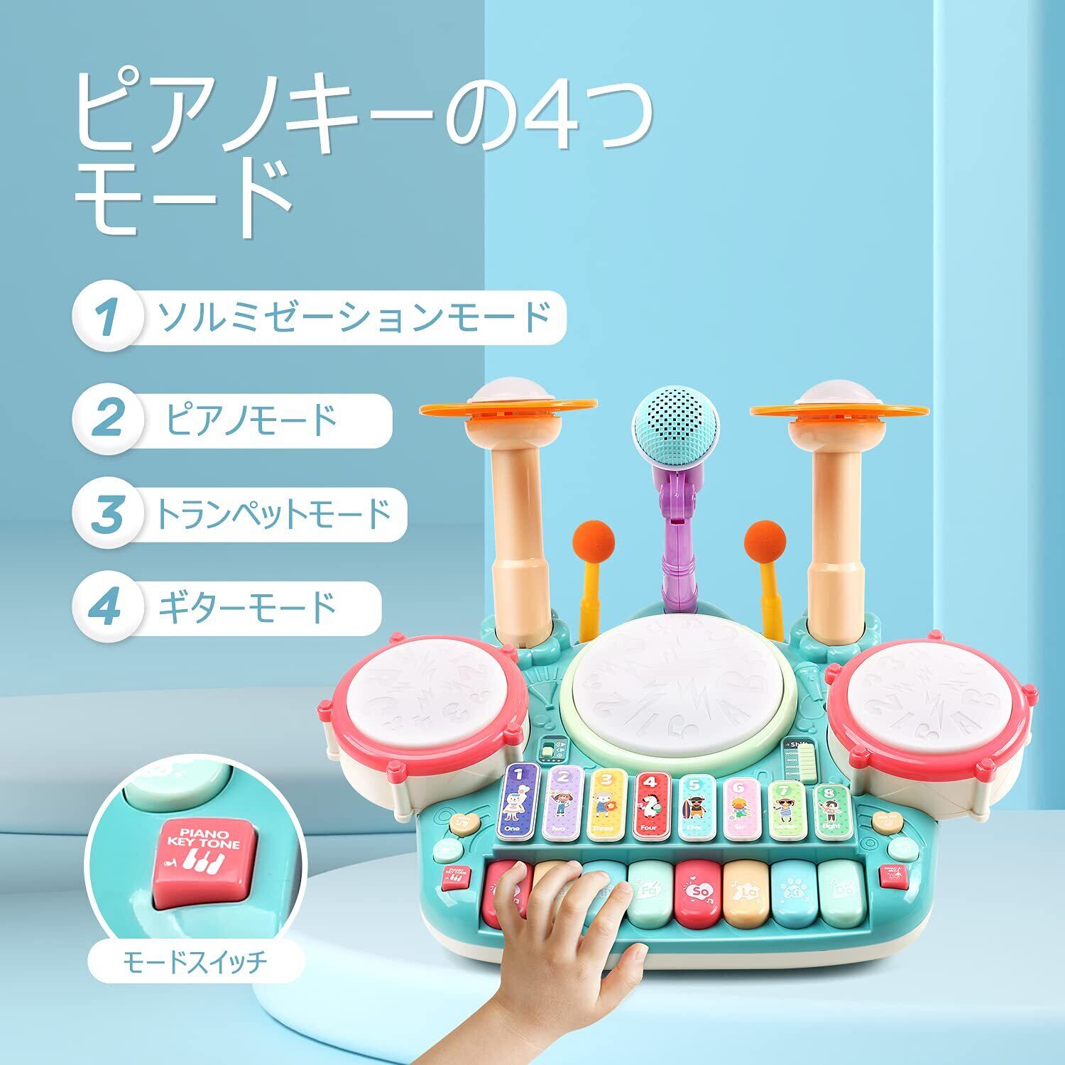 【子供ための音楽教育】小さなミュージシャンのための完璧な学習音楽おもちゃになります。子供の音楽への興味を高め、子供の目と手の協調を強化し、ドラムを叩いてピアノキーボードを演奏することにより、細かい運動能力と聴覚感覚を発達させます。