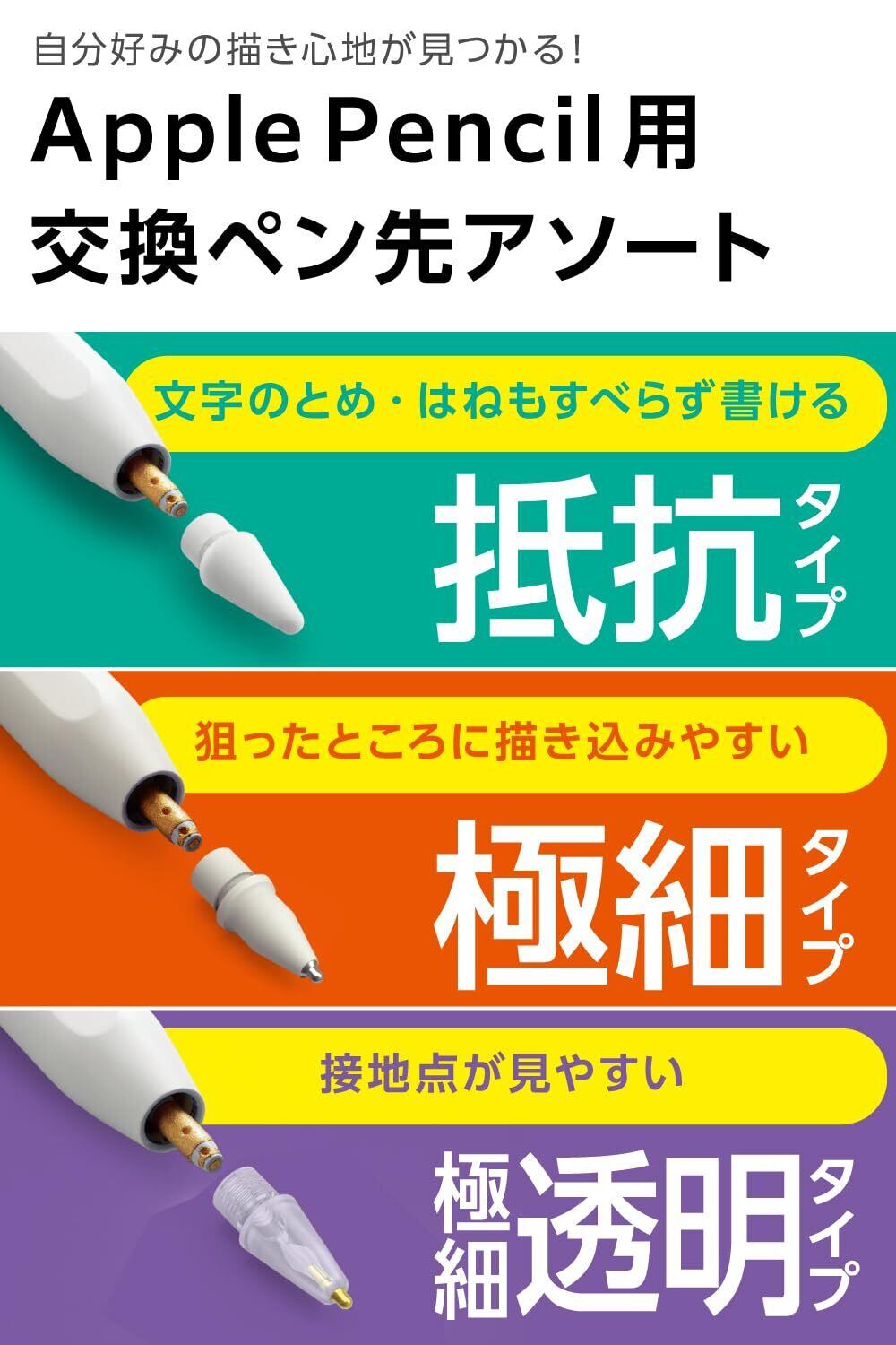 エレコム apple pencil ペン先 交換用 アップルペンシル ペン先 【Apple Pencil (第1世代)(第2世代)(USB-C)対応】 抵抗タイプ/極細タイプ/極細透明タイプの3個入り ipad ペンシル PWTIPAPAS01