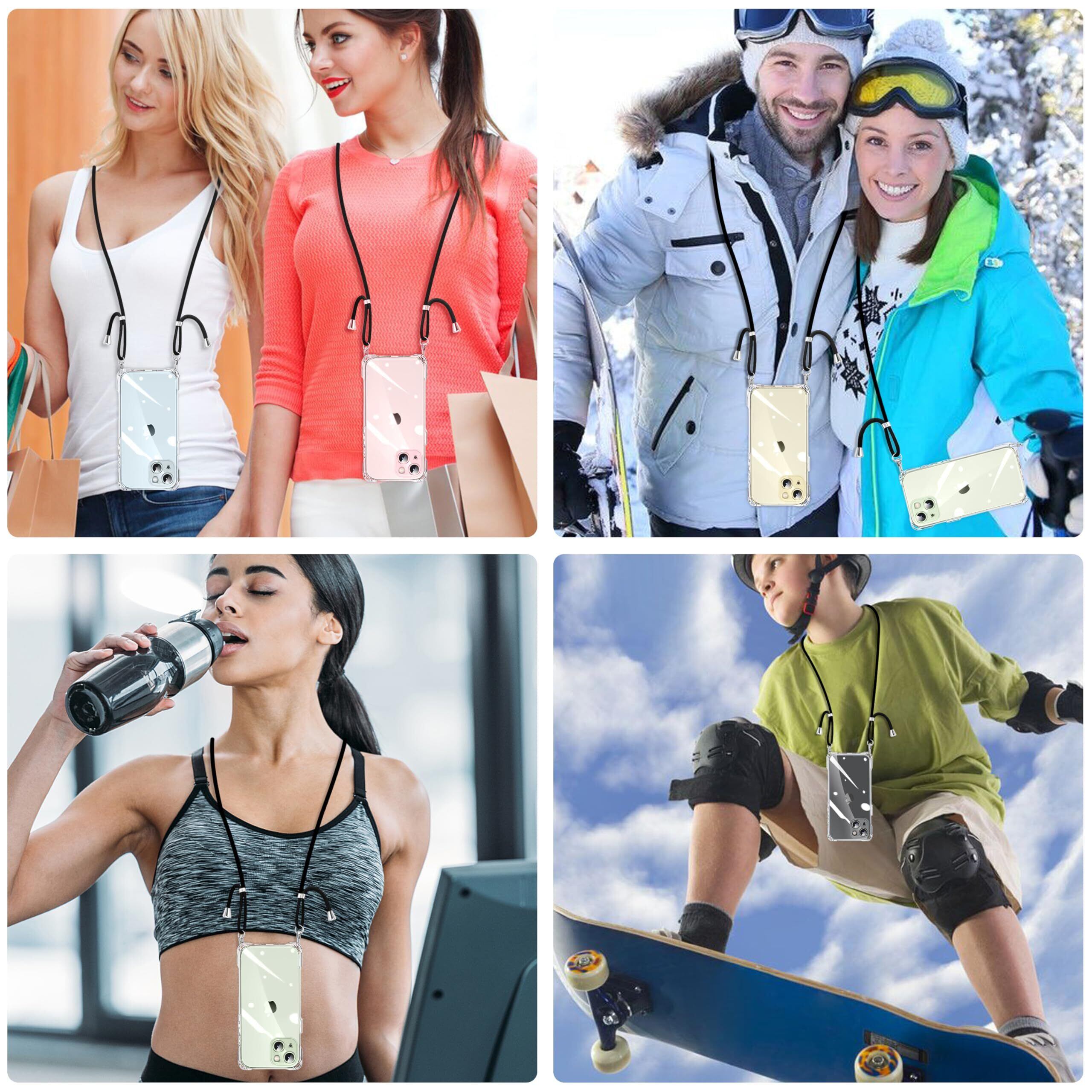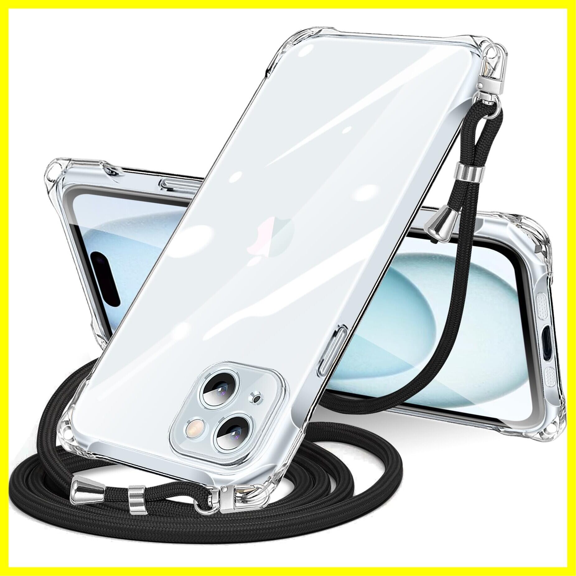 iPhone 15 用 ケース クリア ショルダー iPhone15 用 スマホケース アイフォン15 カバー 肩掛け 斜めかけ 縄掛けケース 透明 薄型 軽量 TPU 携帯ケース 紐付き 斜めがけ 織りストラップ付き ネックストラップ ショルダー ケース 縦/横 2WAY 長さ調整可能 取り外し可能 落下防止 紛失防止 ワイヤレス充電対応 (クリア)