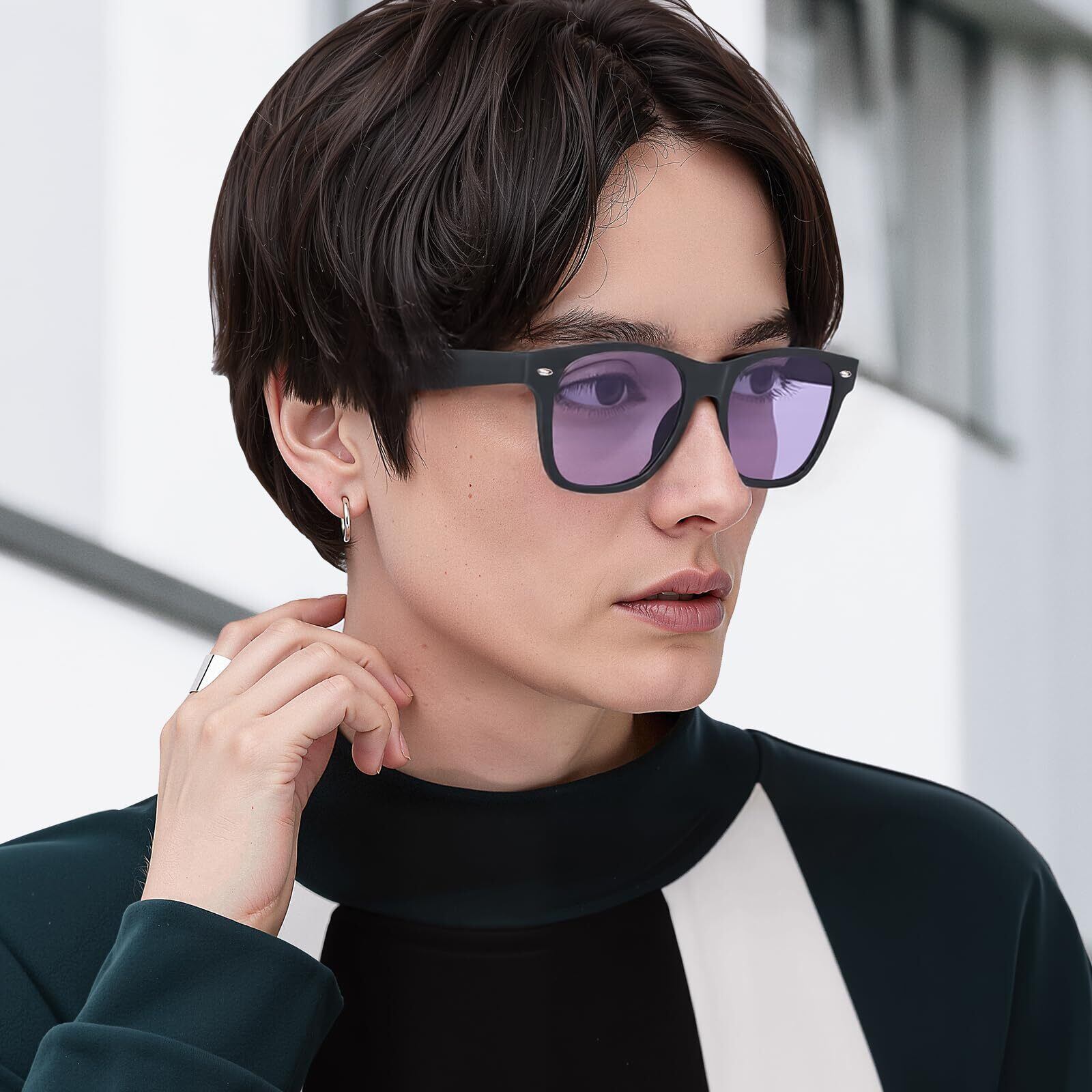 クラシックなスクエアフレームデザイン - 偏光レンズの軽いウェリントンタイプサングラス、常にトレンドに敏感な人たちから支持されています。サングラスのワンピース鼻パッドは、あなたの頭にサングラスを置くときにヘアピンの問題を避けることができます。偏光サングラスはユニセックスなサングラスで