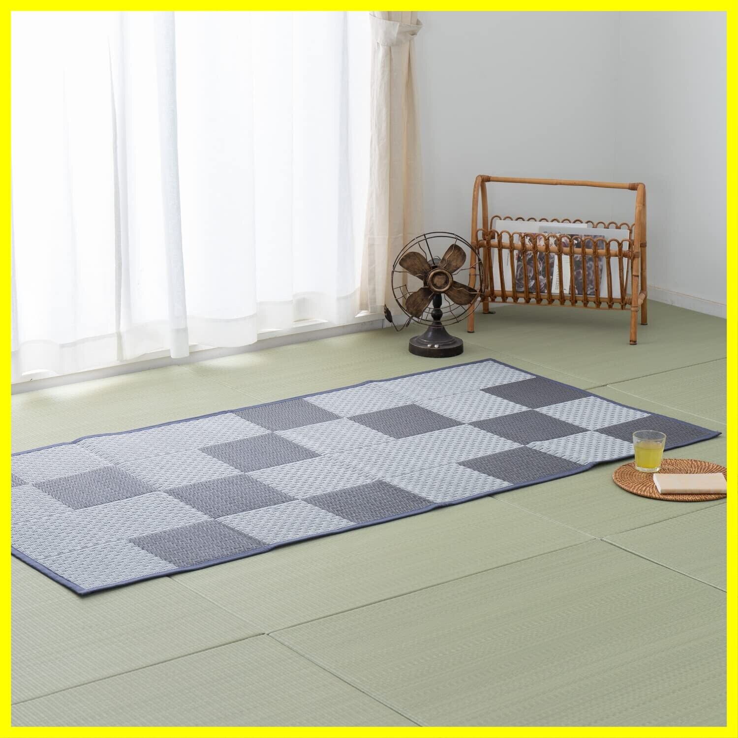 萩原 洗える い草風カーペット グレー 江戸間1畳 約88X174cm 「矢倉」 ラグ 花ござ モダン 和風 市松柄