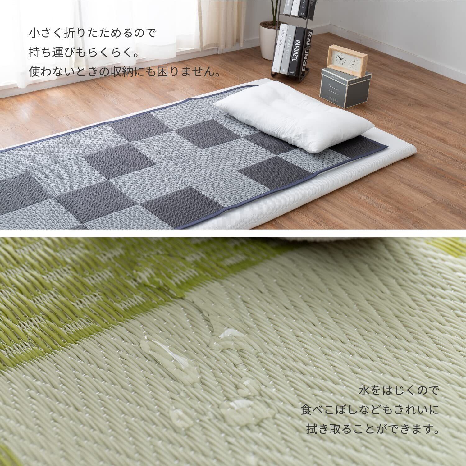 見た目は、い草の上敷きのようですが、実は、ポリプロピレン素材などを使用して織り込んだ敷物で、強度がしっかりとしています。水こぼしや汚れに強く、お手入れも簡単だから、小さなお子様やペットのいるご家庭にもおすすめです。