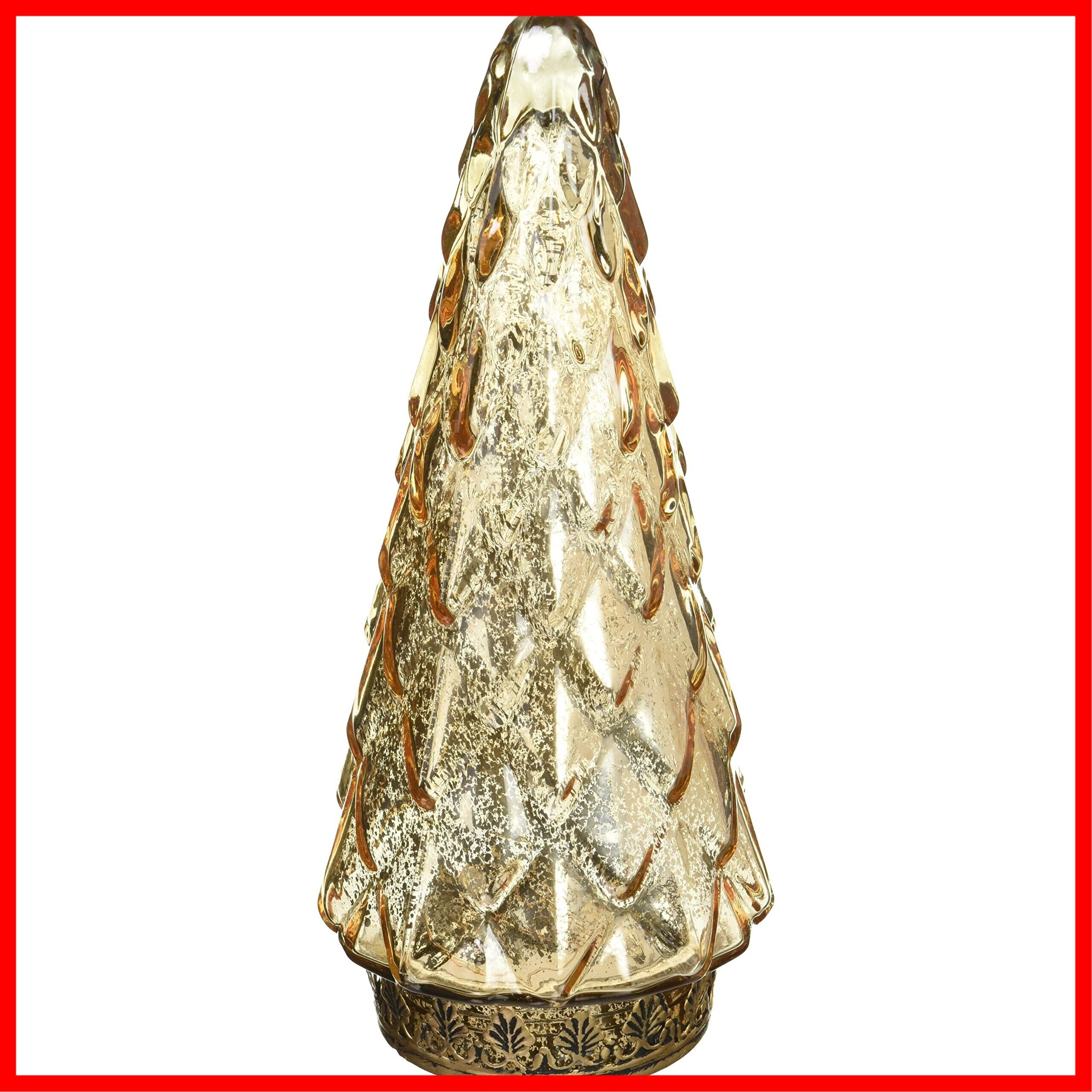 ケーアイジャパン クリスマスツリー ガラス製 飾り インテリア装飾 ビジュー LEDランタン ゴールド 直径10×高さ25cm 166238