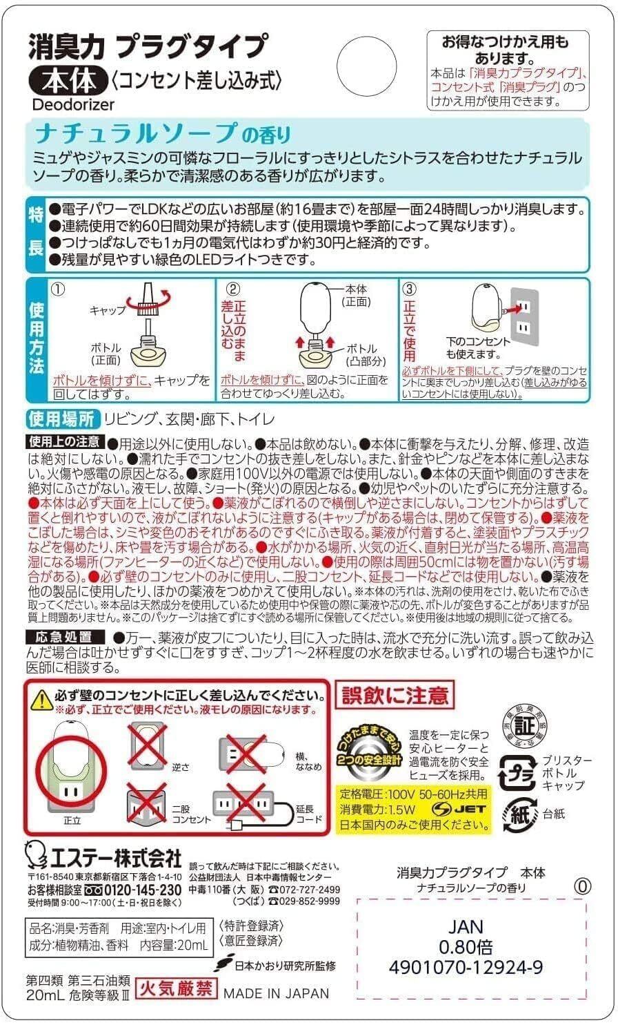 消臭力 [まとめ買い] プラグタイプ 部屋用 トイレ用 ナチュラルソープ 本体+つけかえ2個 60mL 部屋 玄関 リビング トイレ 消臭剤 消臭 芳香剤