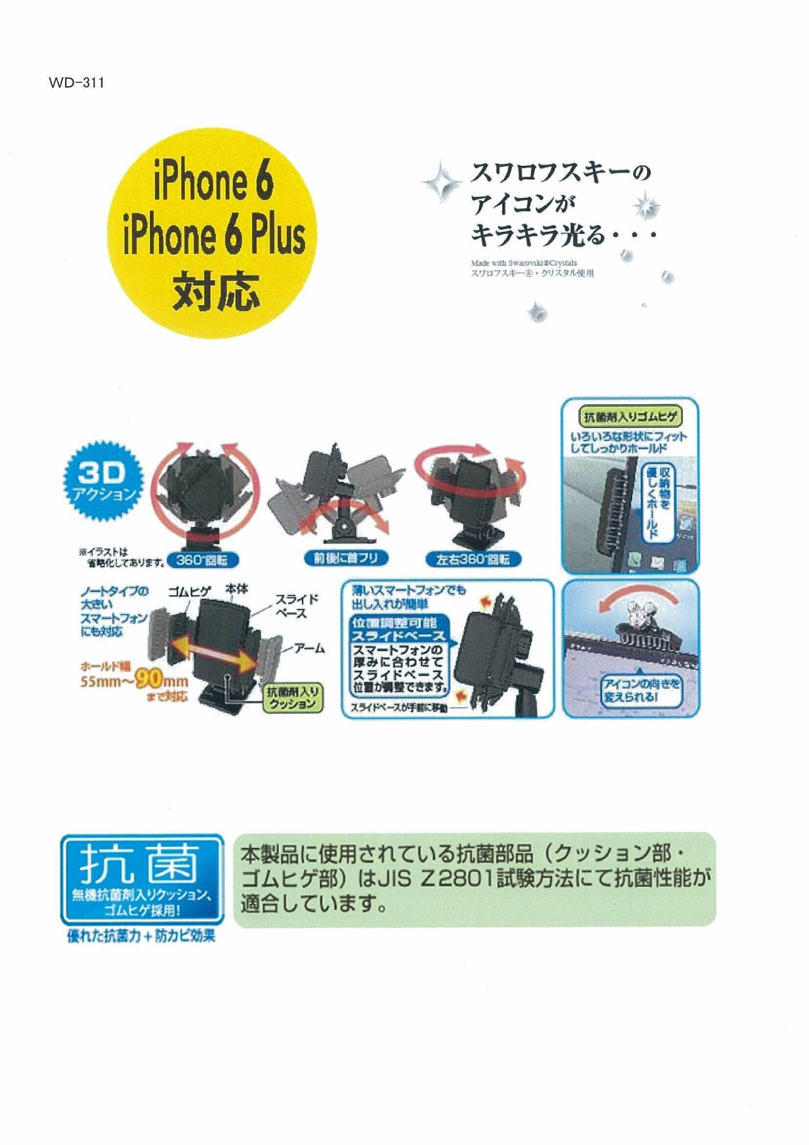 スマートフォンを傷つけない、やわらかい素材のスライドベース。無機抗菌剤入りクッション・ゴムひげはJIS Z2801試験方法にて抗菌性能が適合しました。