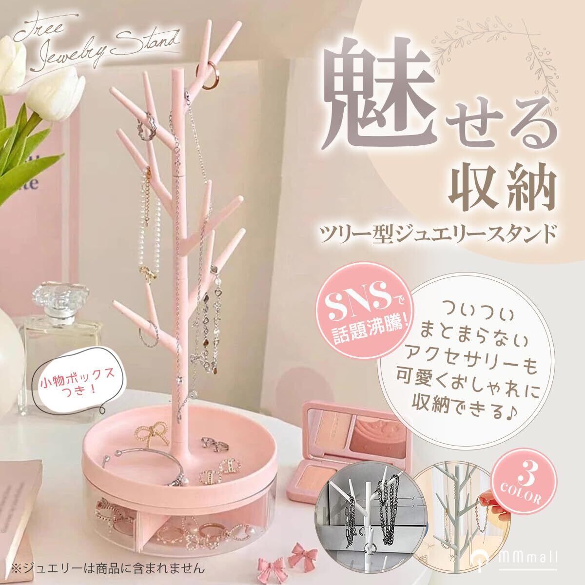 【見せる収納】ツリー型のアクセサリーケースは、可愛いお部屋のインテリアとしても映えます。ついついまとまらない小物やジュエリーも可愛くおしゃれに収納できちゃいます。