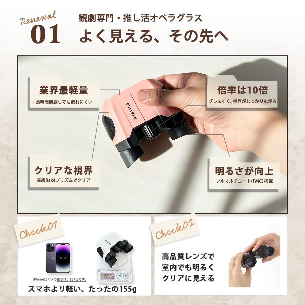 【軽さと機能性、両立の設計】 わずか155gの重量。最高級のBak4プリズムを使用し、視野の明瞭さと鮮明さを実現。10倍の高倍率で、舞台上の表情や細部までクリアに捉え、感動的なライブ体験を提供します。宝塚友の会、会員様もお使いいただいています。