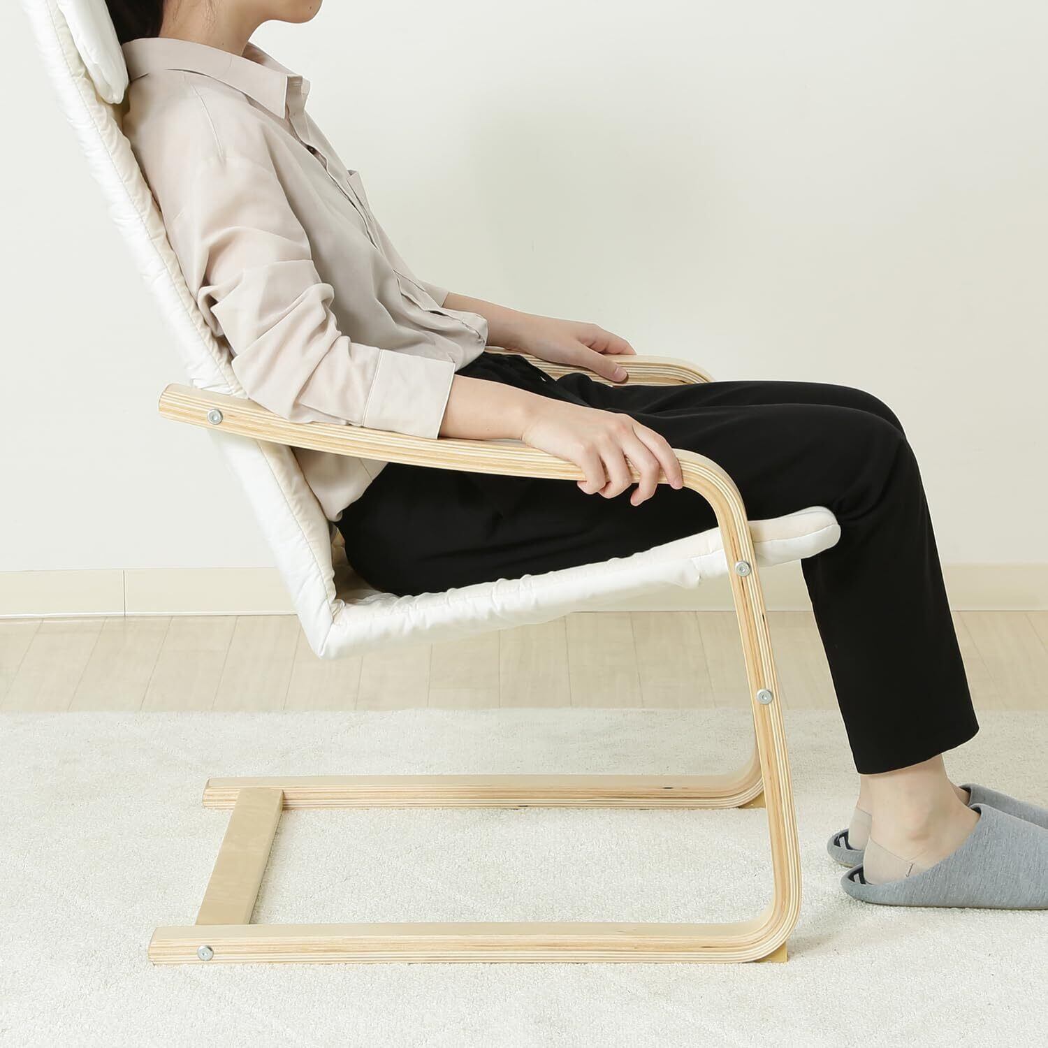 不二貿易 リラックスチェア パーソナルチェア 1人掛け 幅59×奥行77×高さ102cm アイボリー 木製 曲木 組立商品 一人掛けソファ スリム 84057